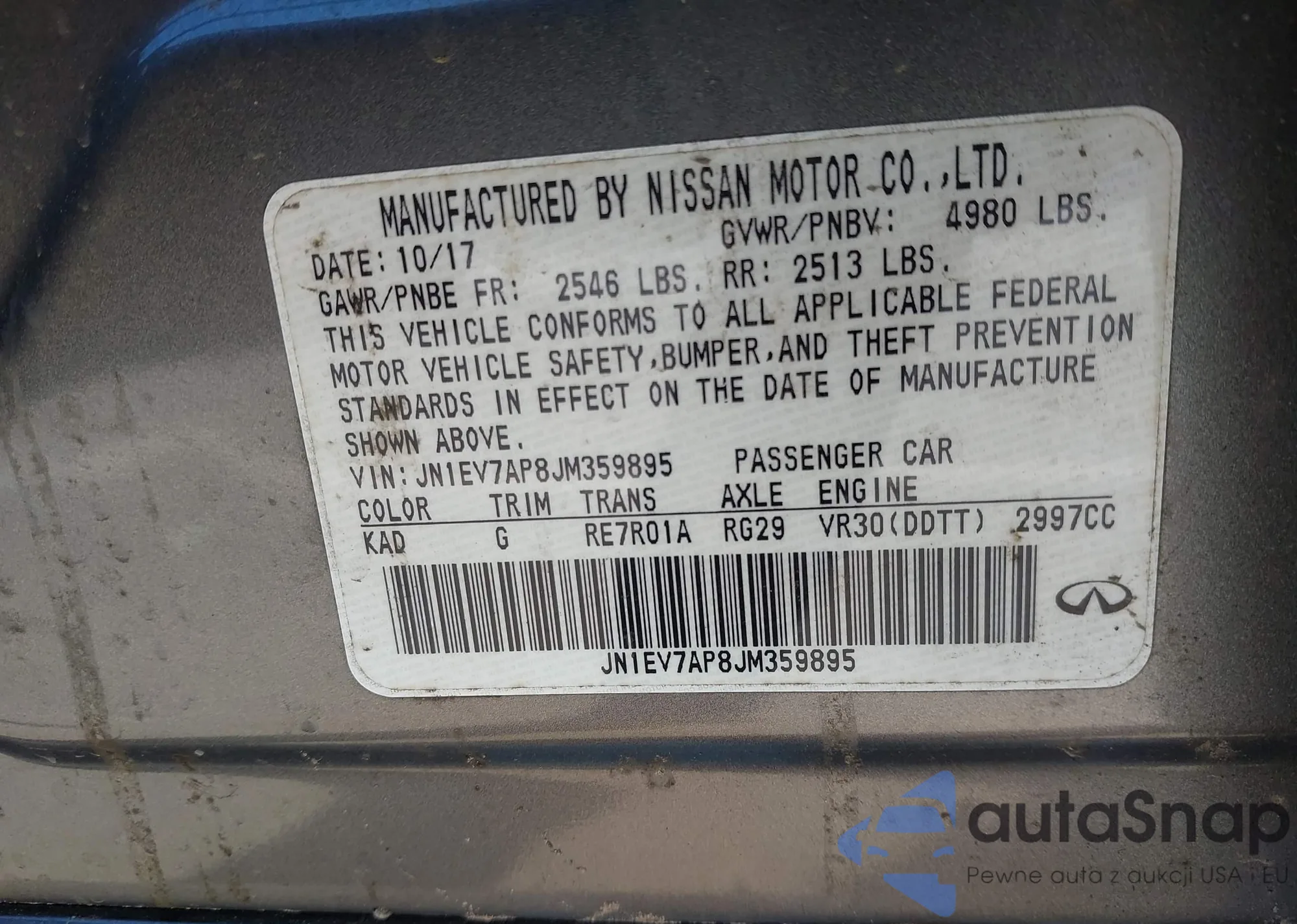 LOT: 44447157 VIN: JN1EV7AP8JM359895
