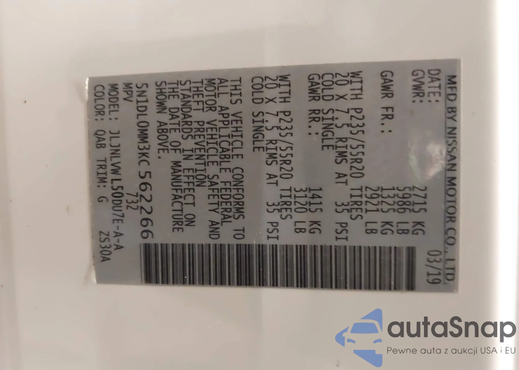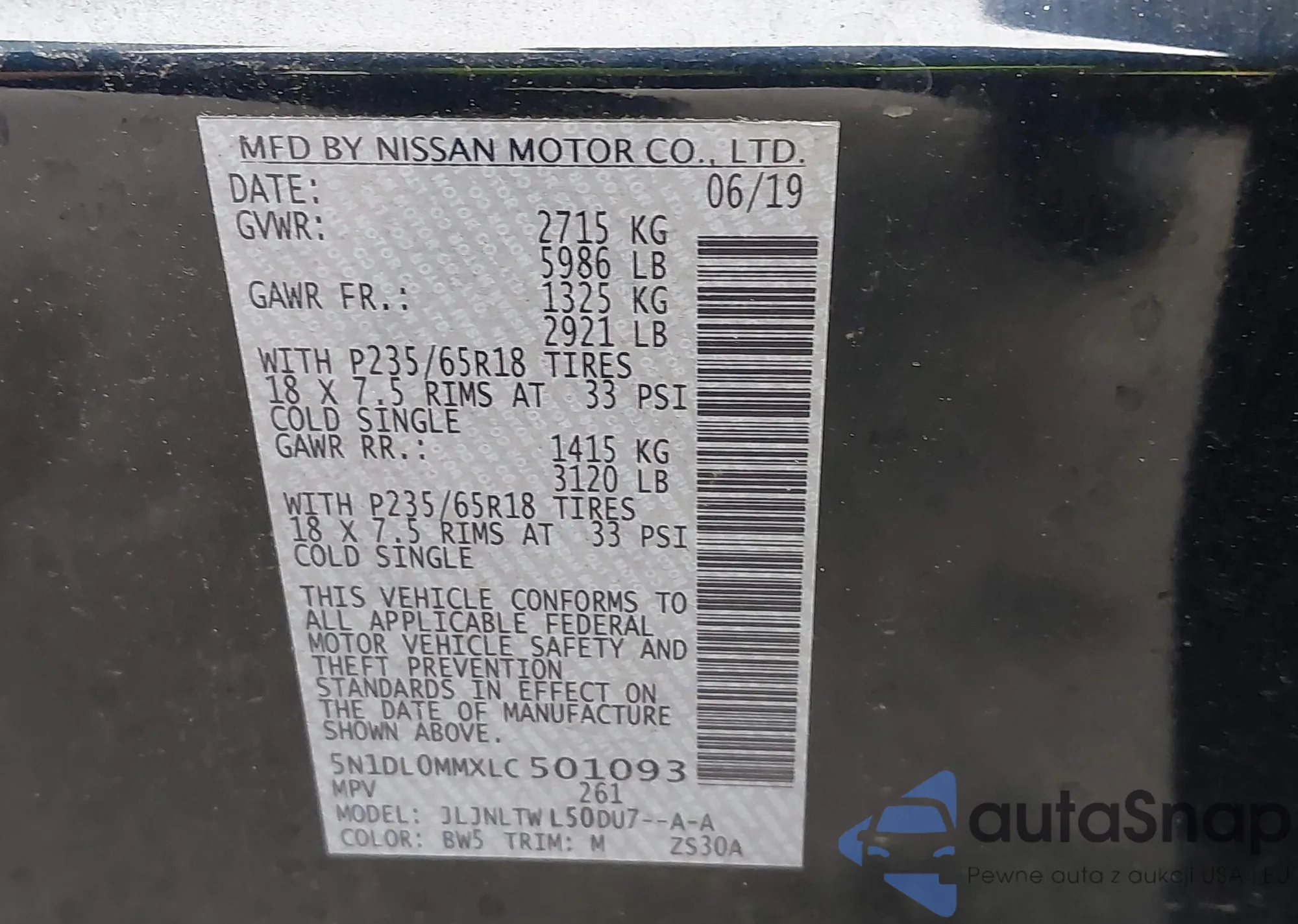• VIN 5N1DL0MM4JC507033