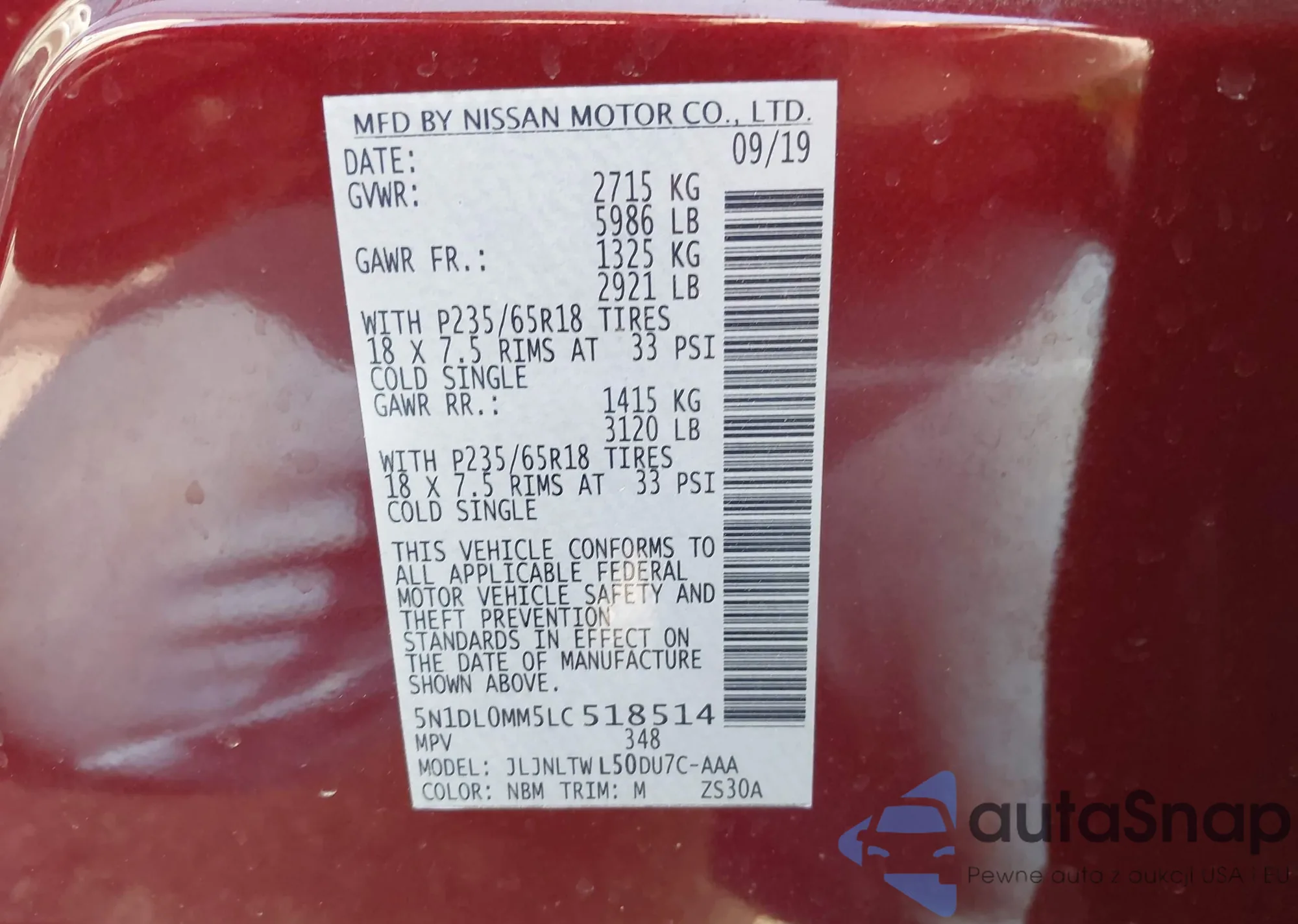 • VIN 5N1DL0MM5LC518514