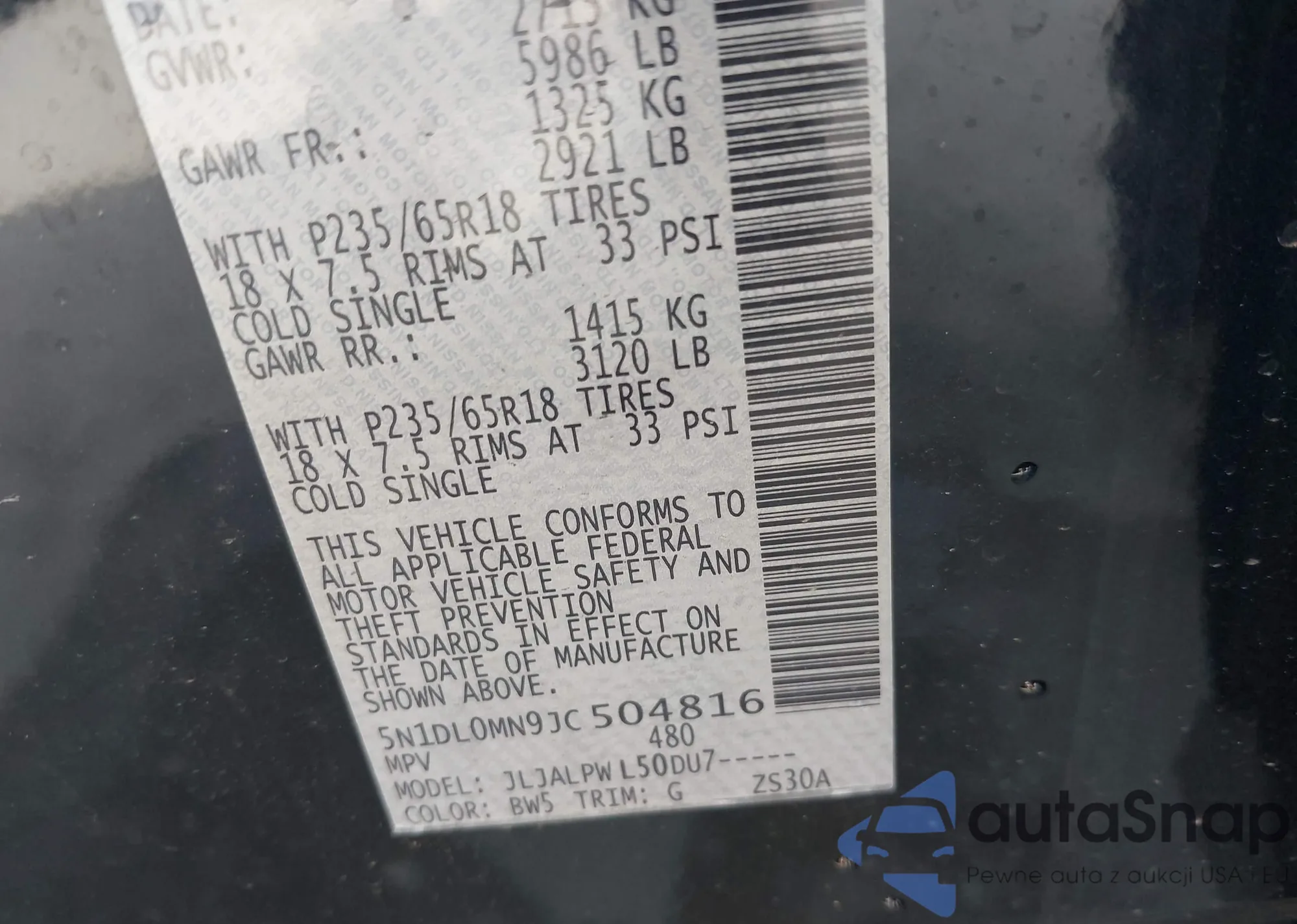 • VIN 5N1DL0MN9JC504816