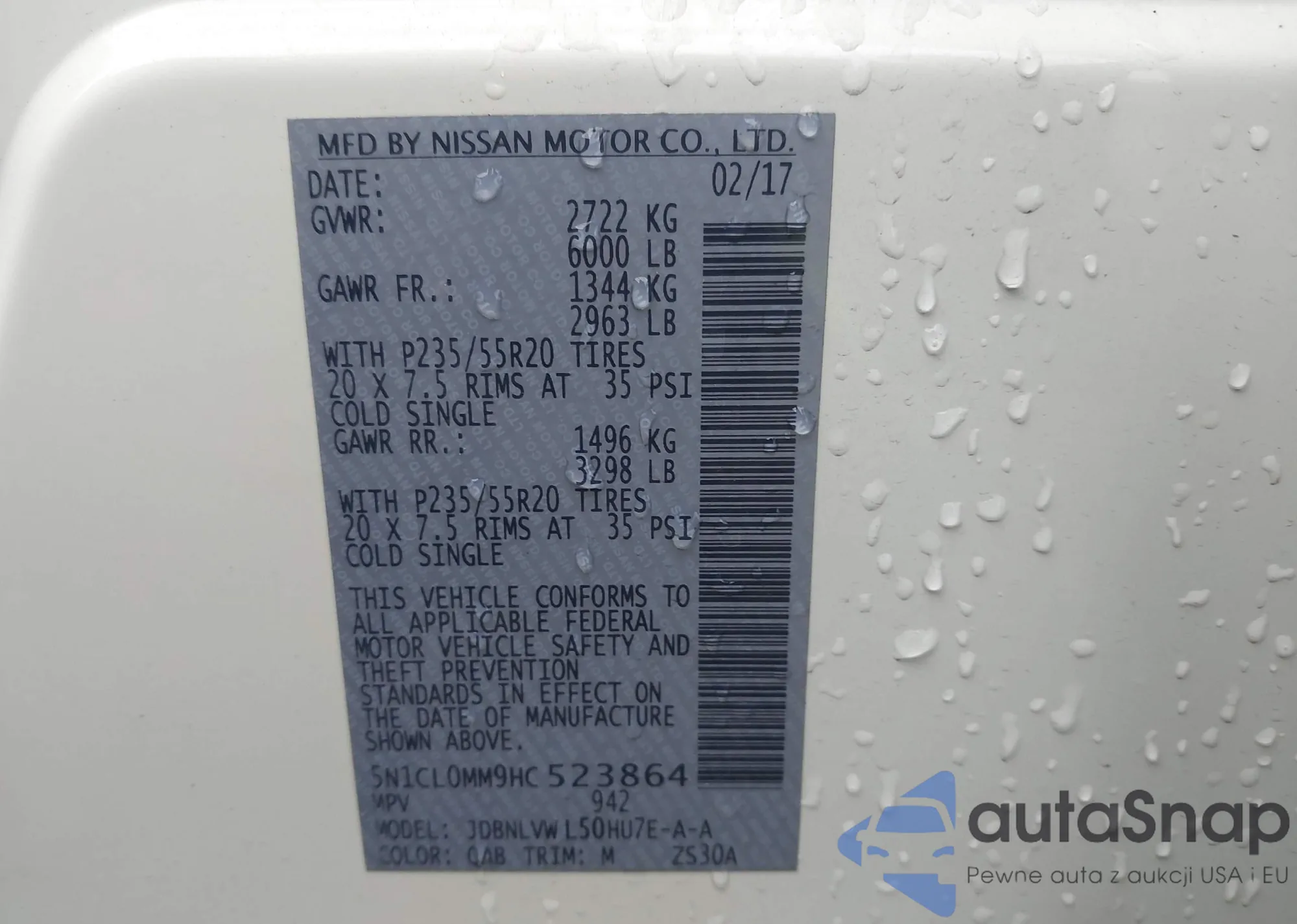 • VIN 5N1CL0MM9HC523864