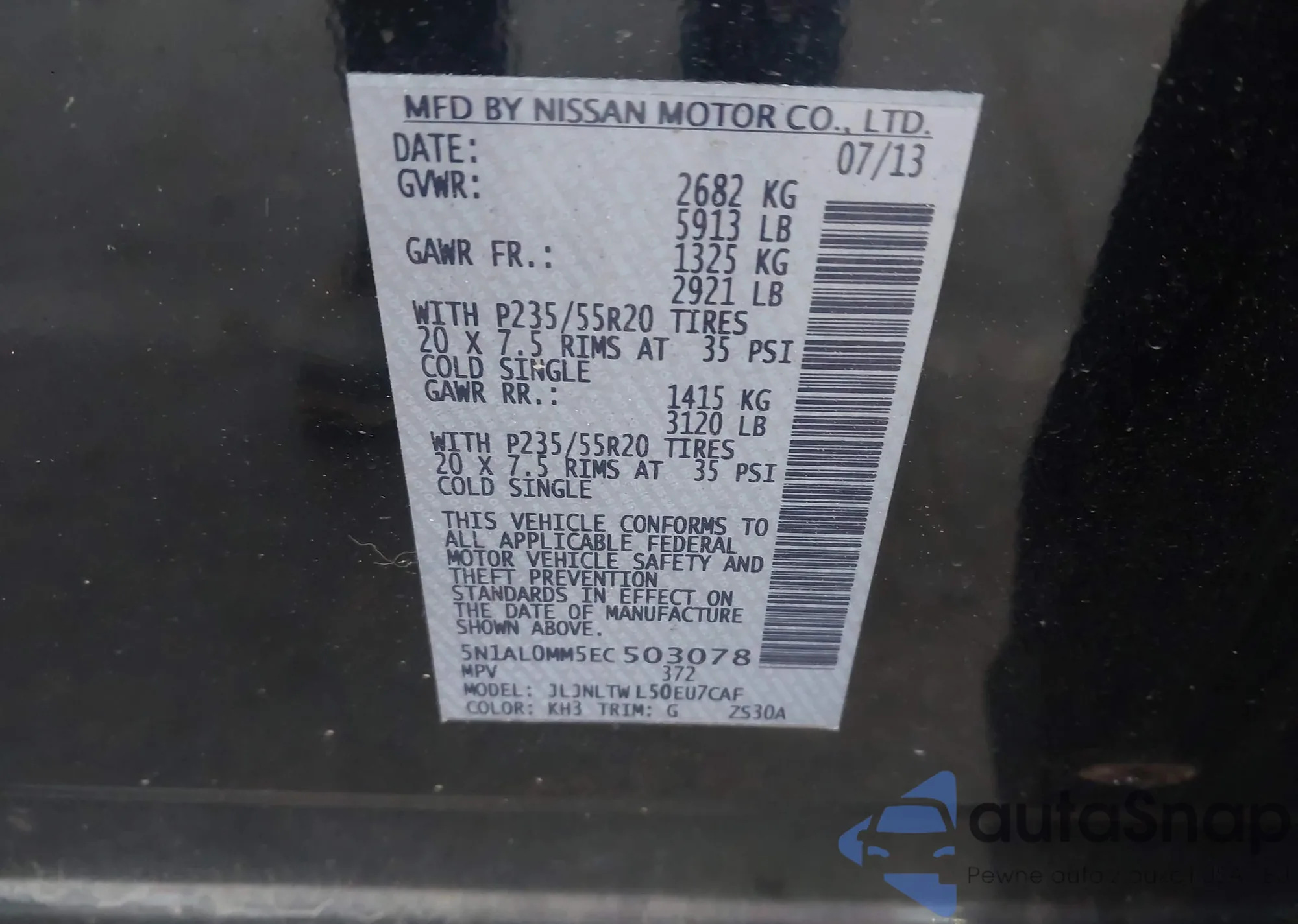 • VIN 5N1AL0MM5EC503078