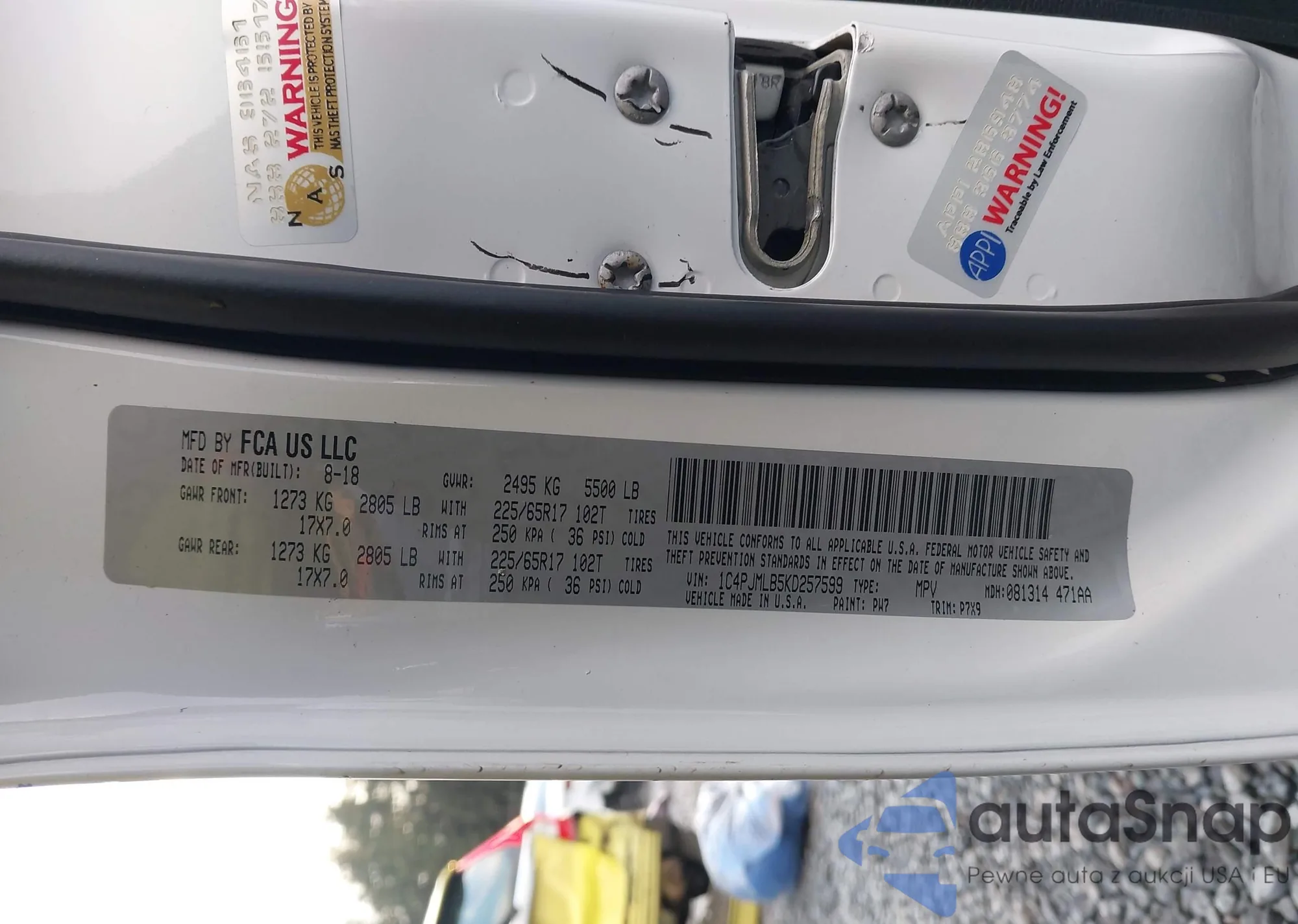• VIN 1C4PJMLB5KD257599
