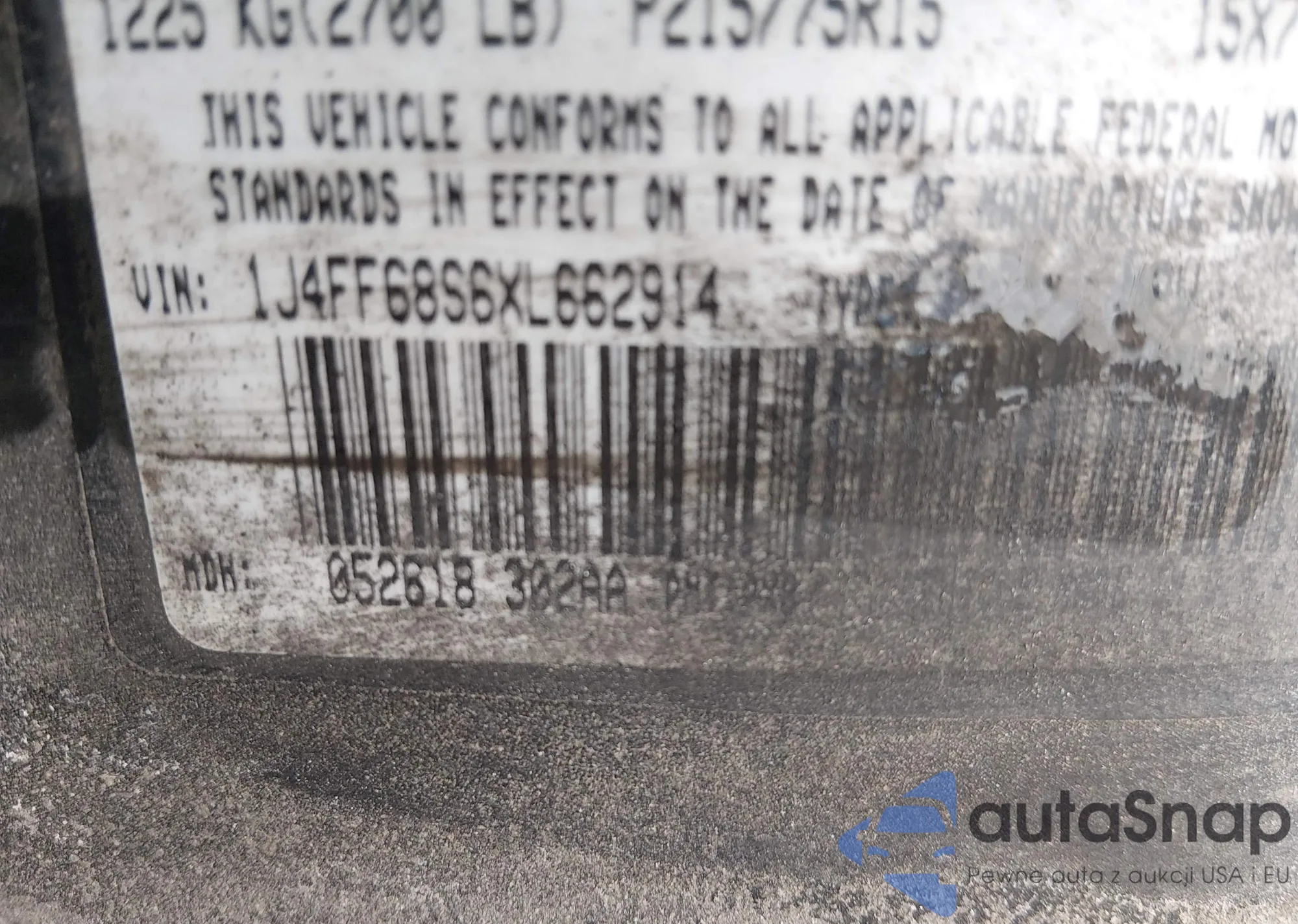 • VIN 1J4FF68S6XL662914