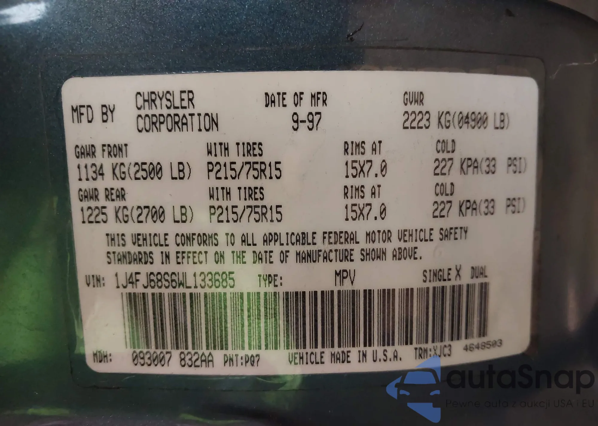• VIN 1J4FJ68S6WL133685