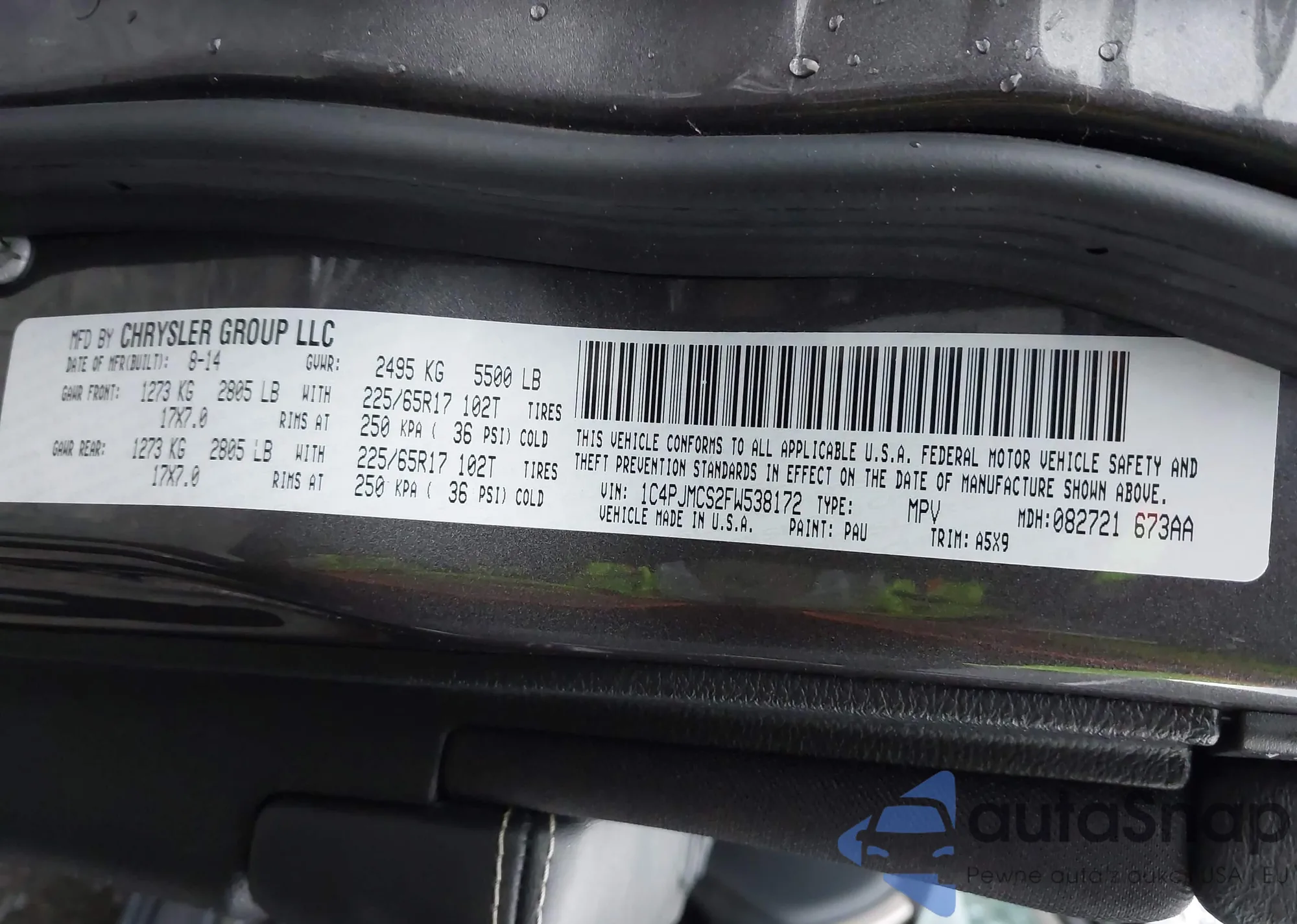 LOT: 44349304 VIN: 1C4PJMCS2FW538172