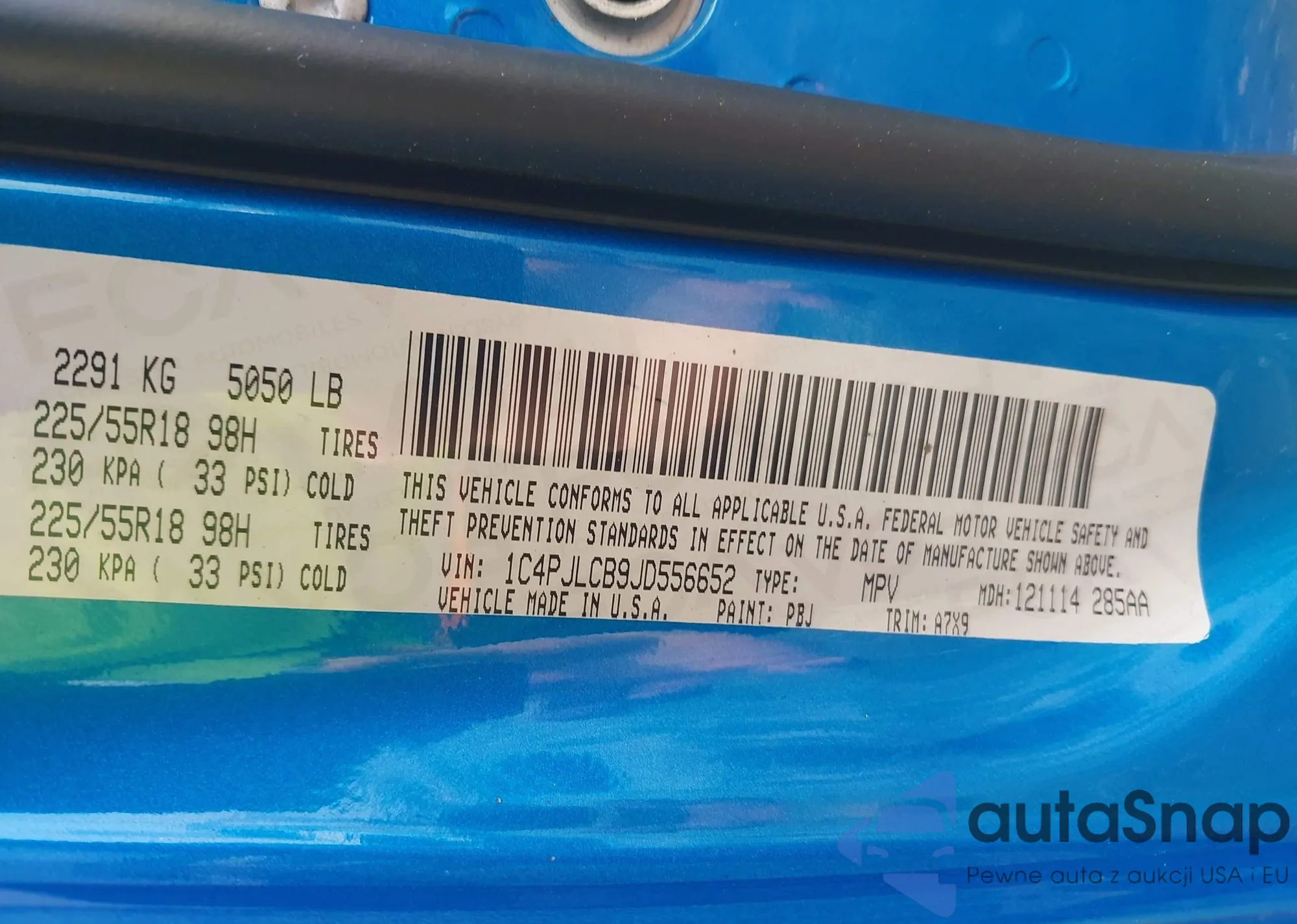 • VIN 1C4PJLCB9JD556652