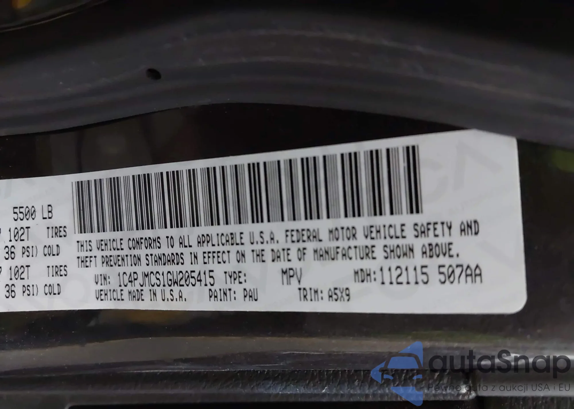 • VIN 1C4PJMCS1GW205415