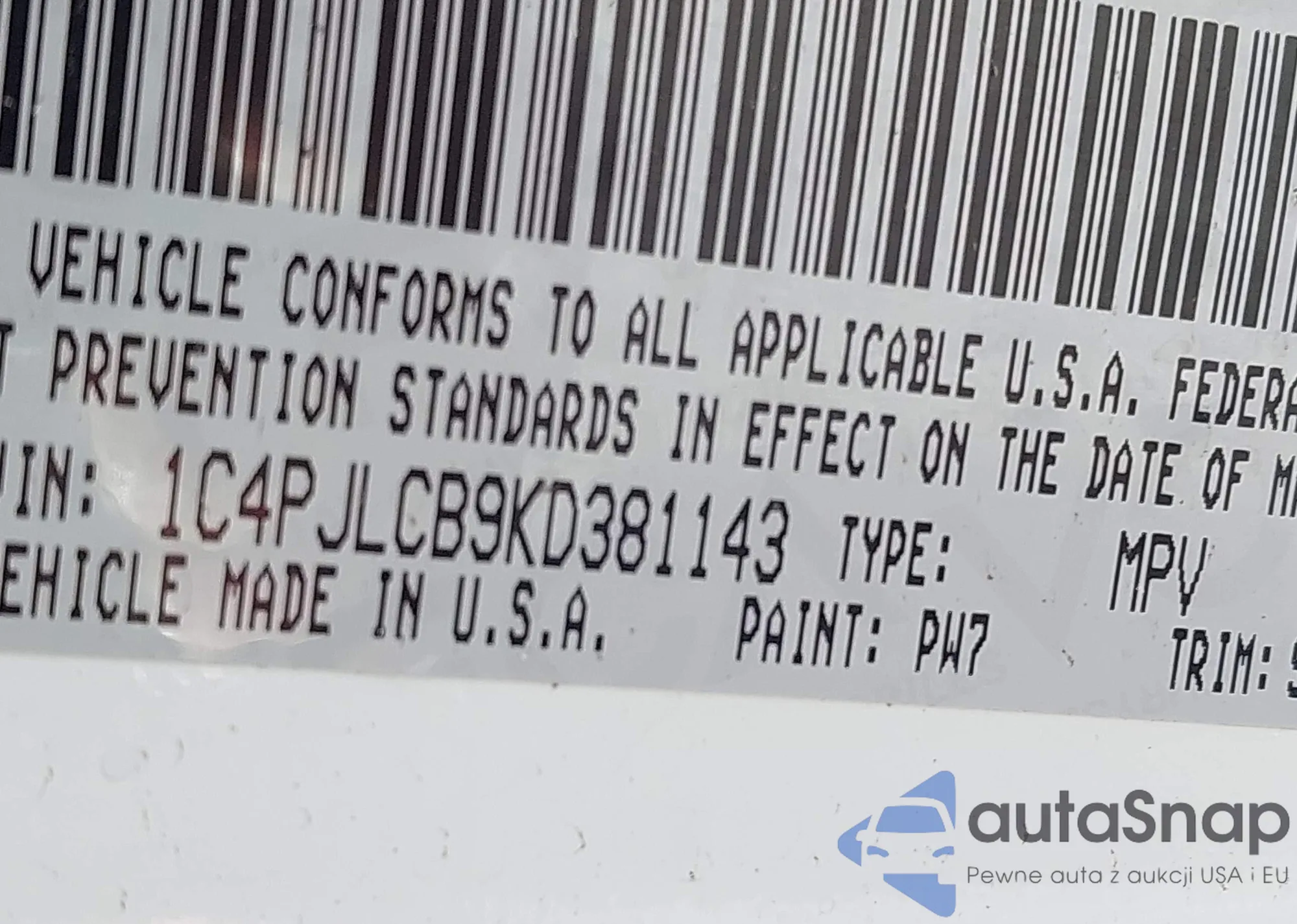 • VIN 1C4PJLCB9KD381143
