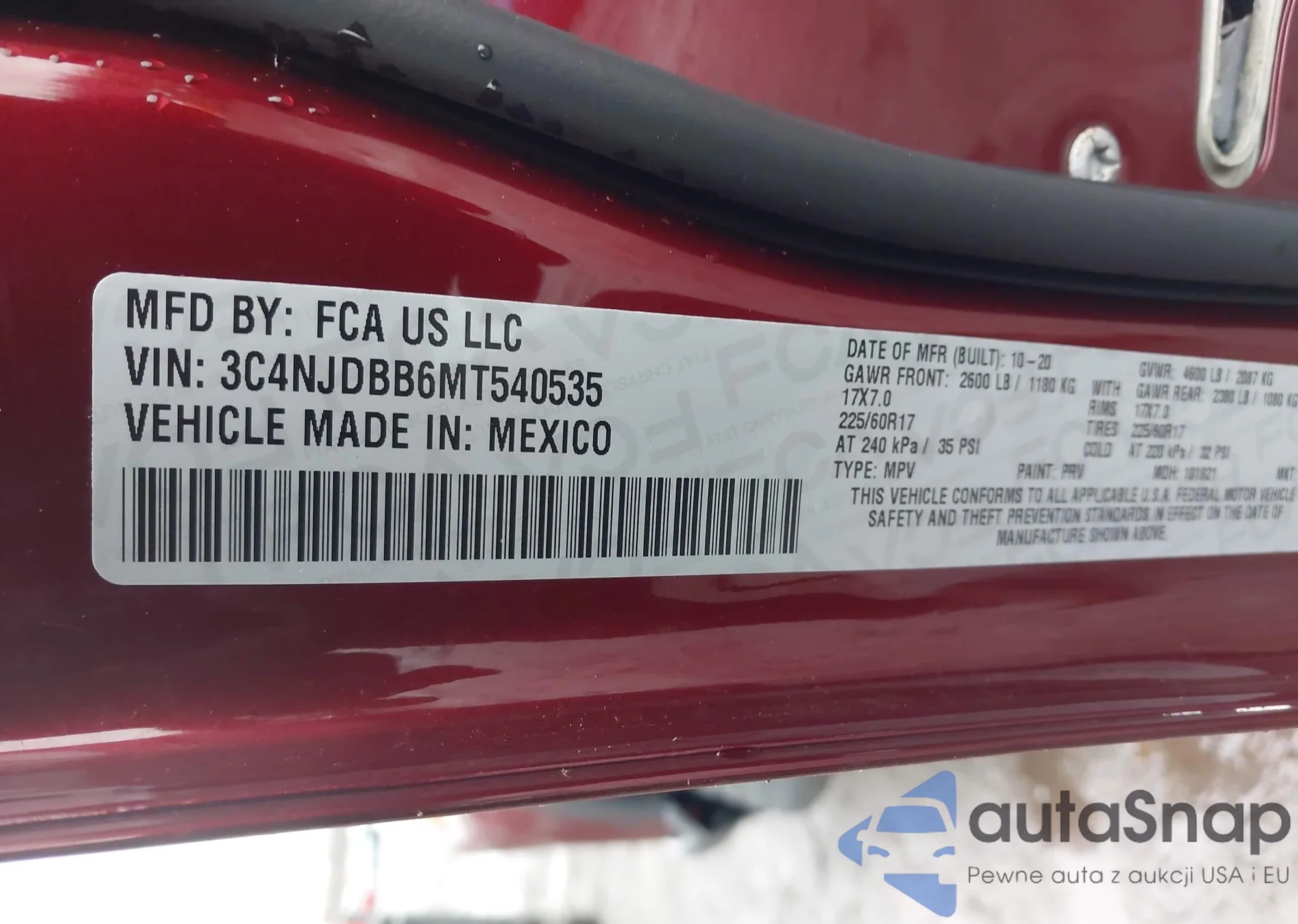 • VIN 3C4NJDBB6MT540535