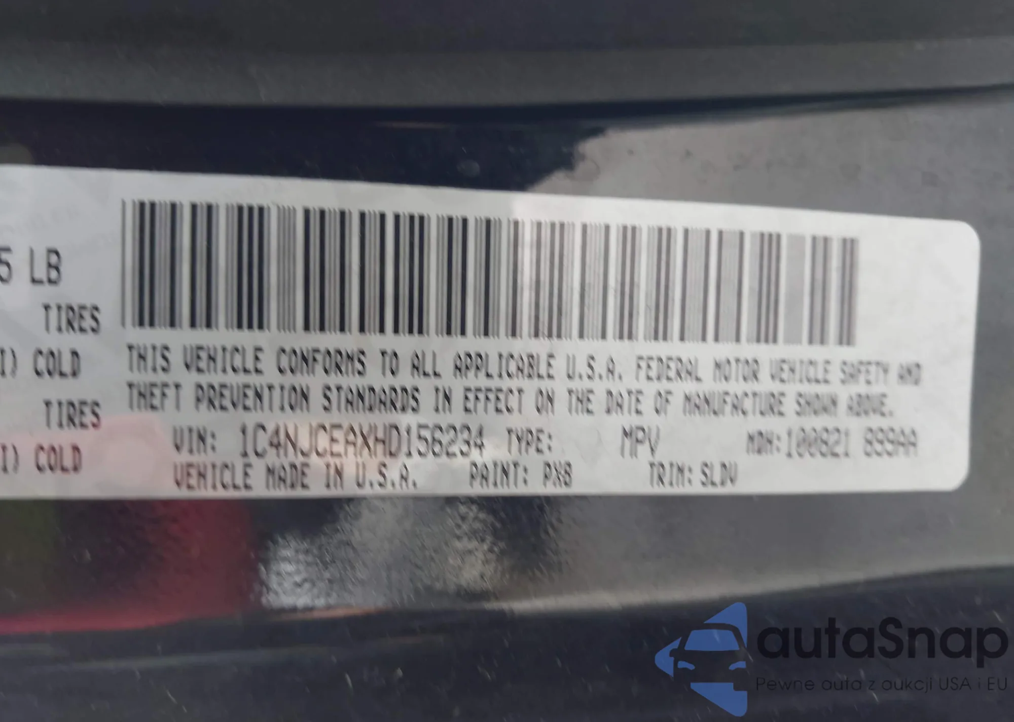 • VIN 1C4NJCEB9HD182476