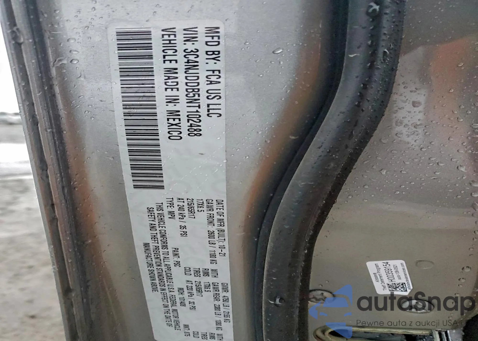 • VIN 3C4NJDDB5NT102488