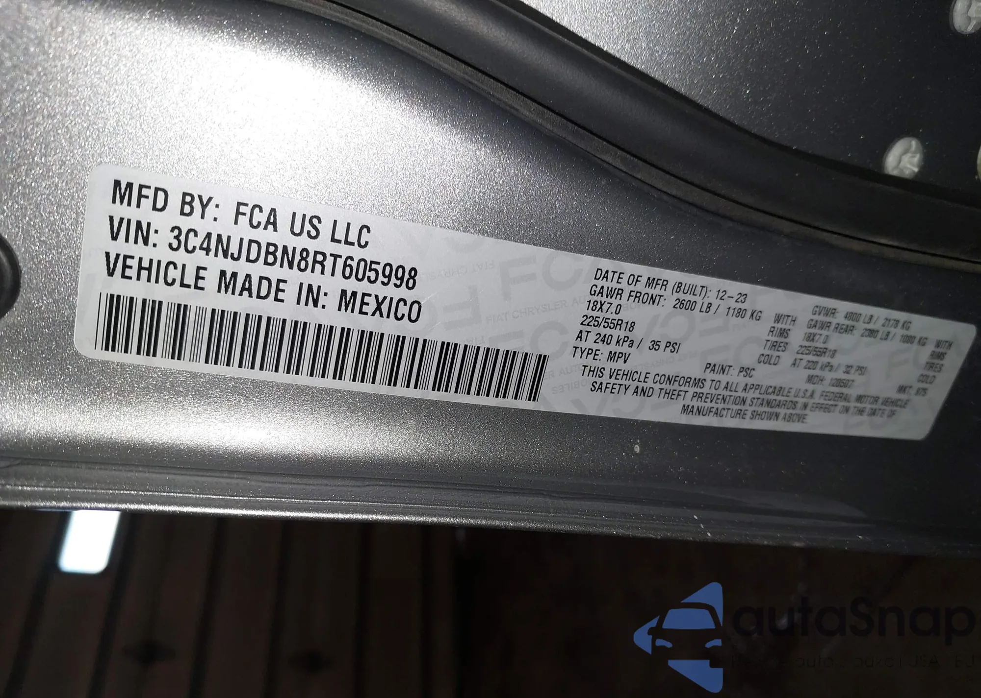 • VIN 3C4NJDBN8RT605998