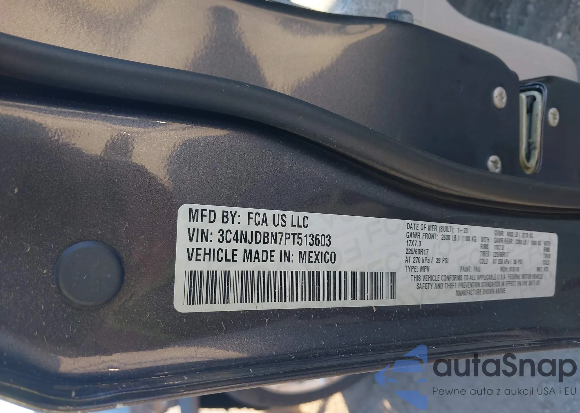 • VIN 3C4NJDBN7PT513603