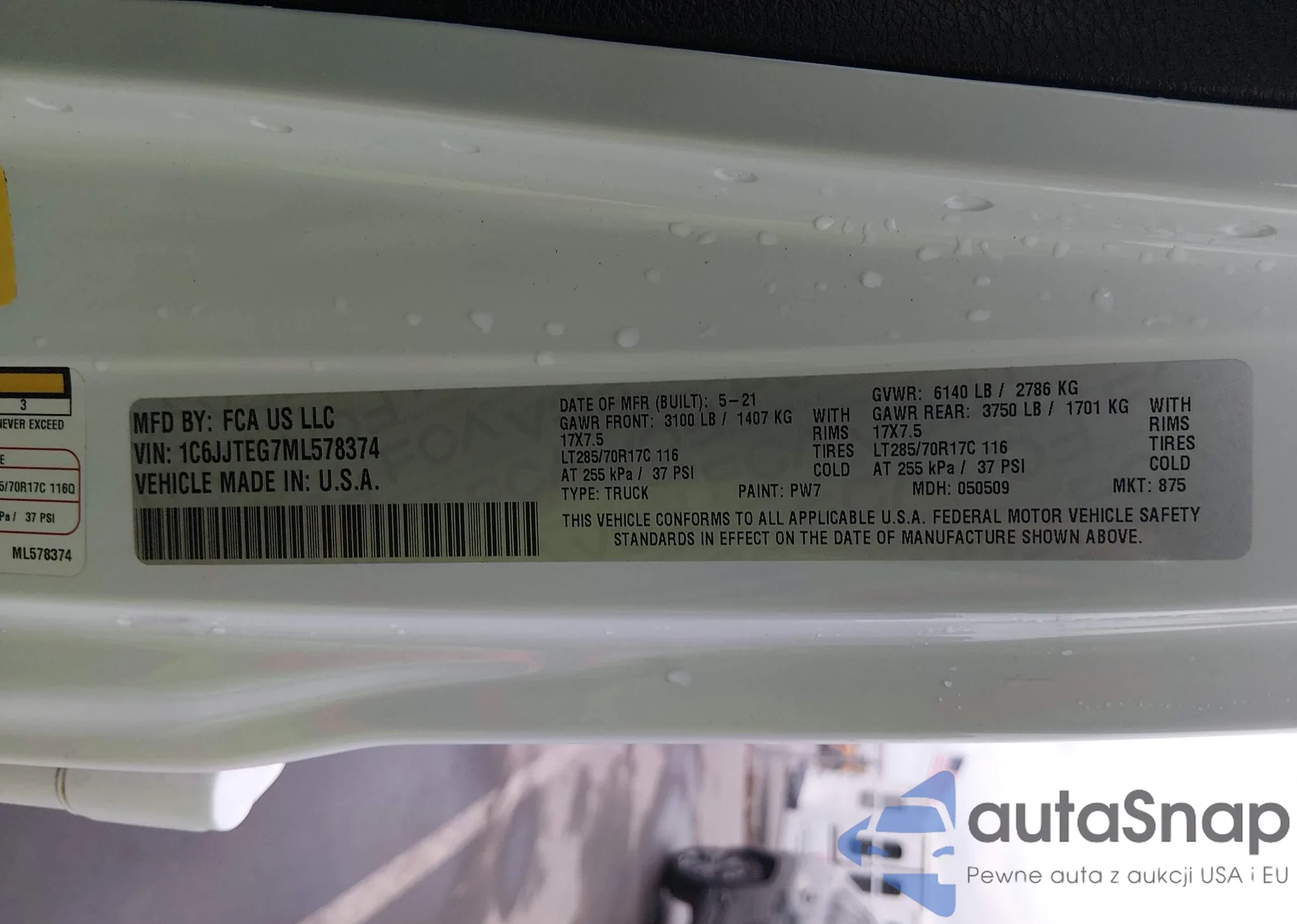 • VIN 1C6JJTEG7ML578374