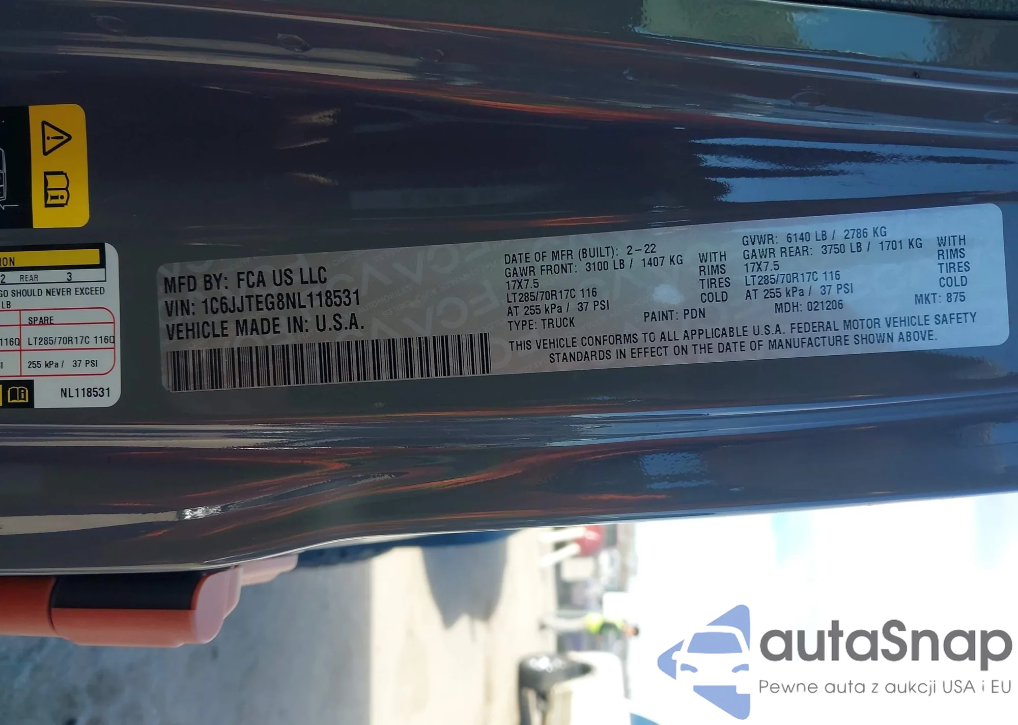 • VIN 1C6JJTEG8NL118531