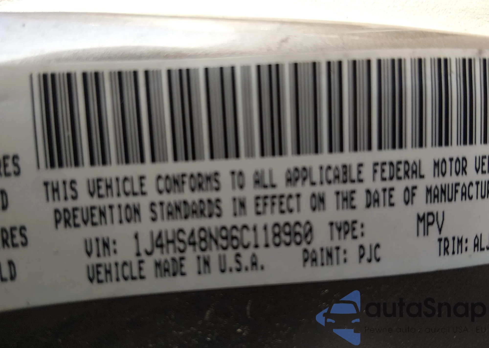 • VIN 1J4HS48N96C118960