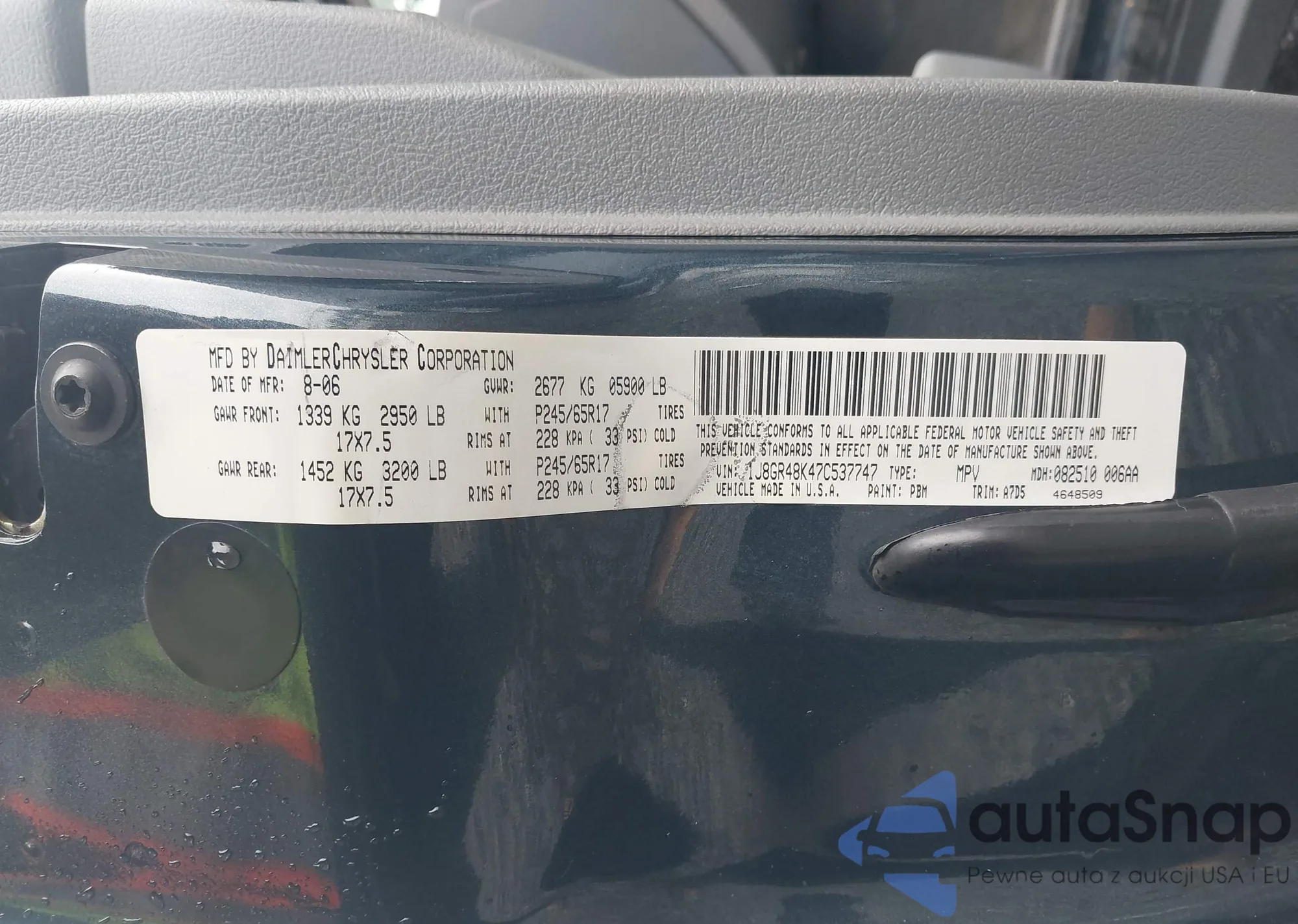 LOT: 44437061 VIN: 1J8GR48K47C537747