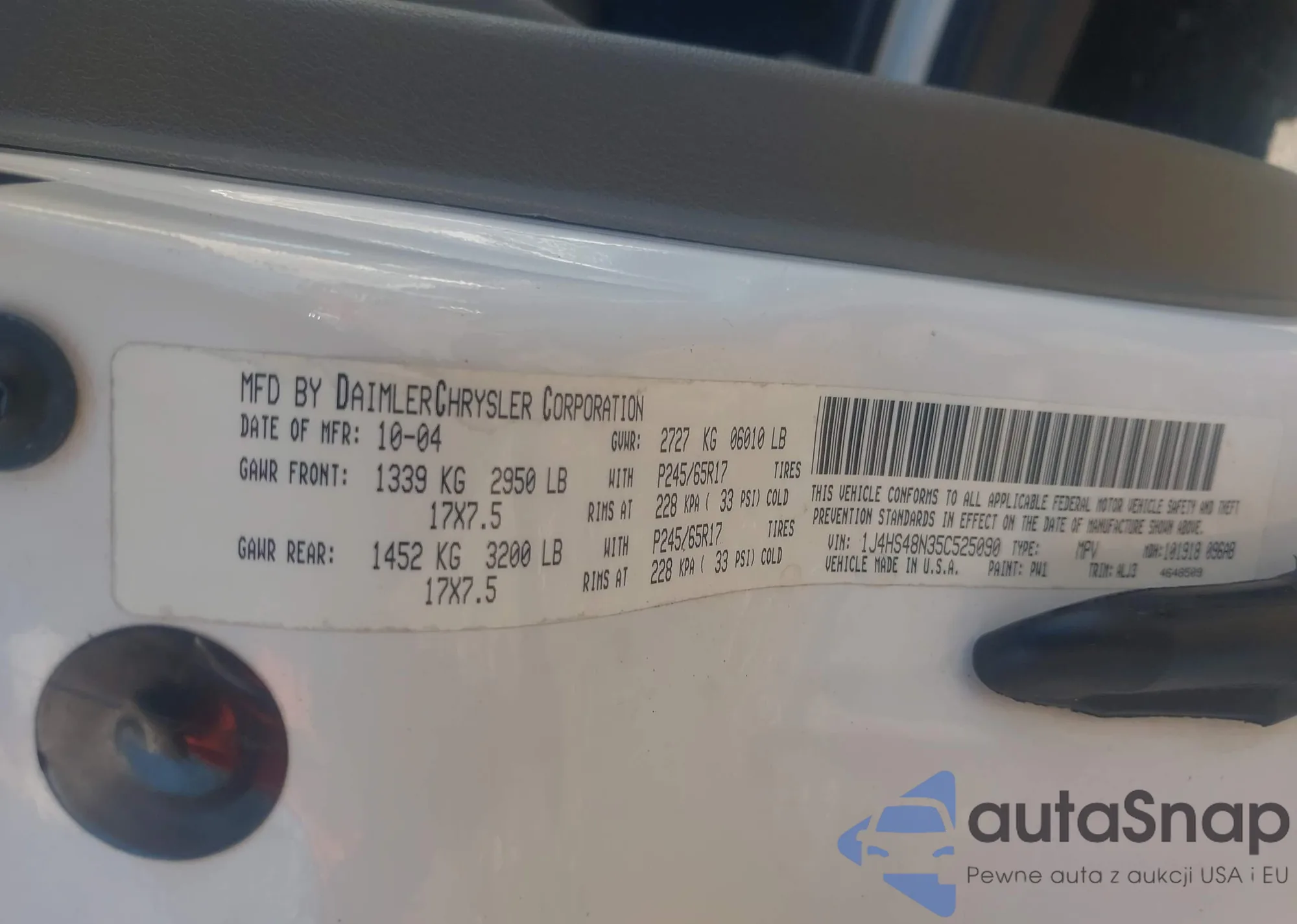 • VIN 1J4HS48N35C525090