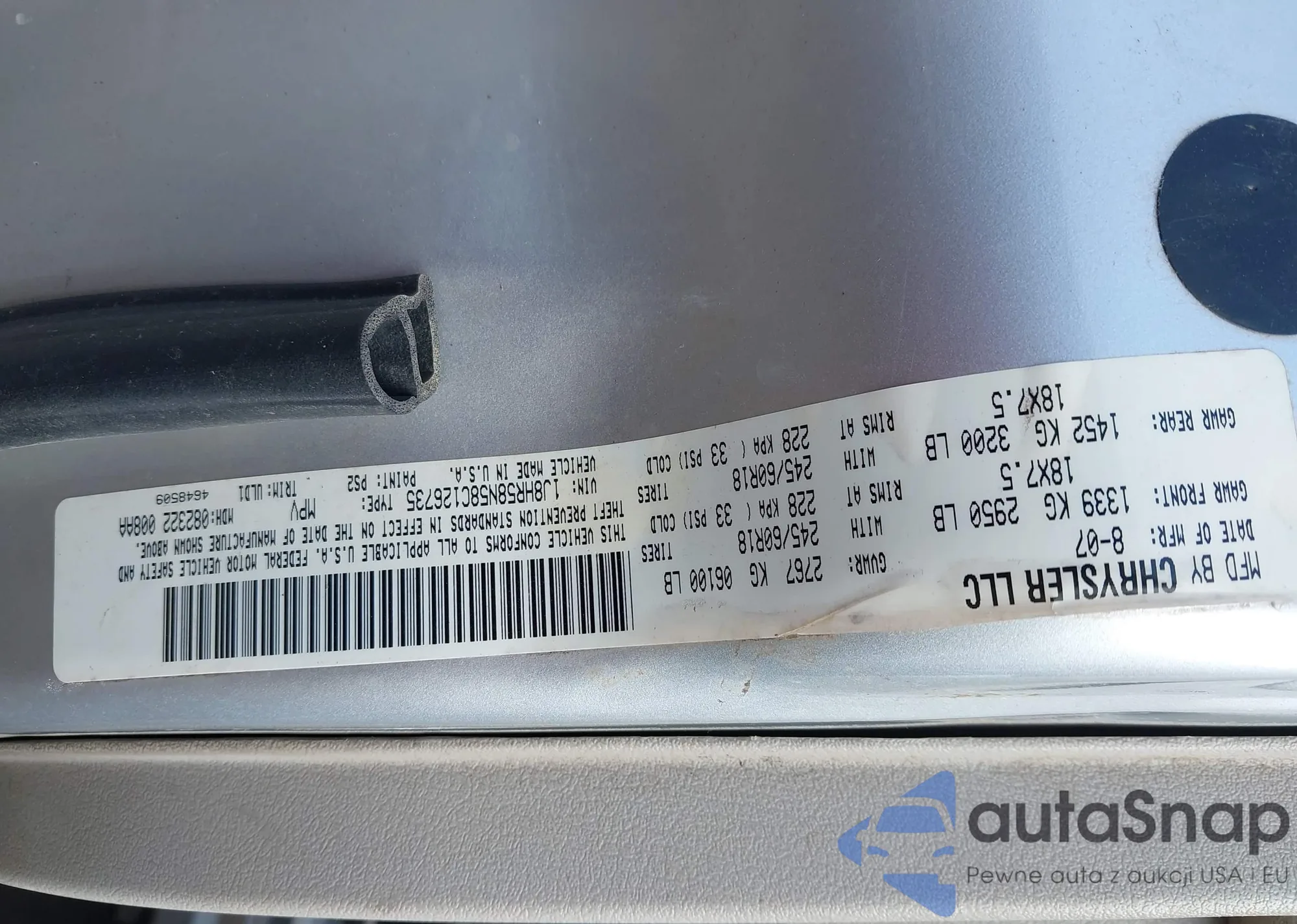 • VIN 1J8HR58N58C126735