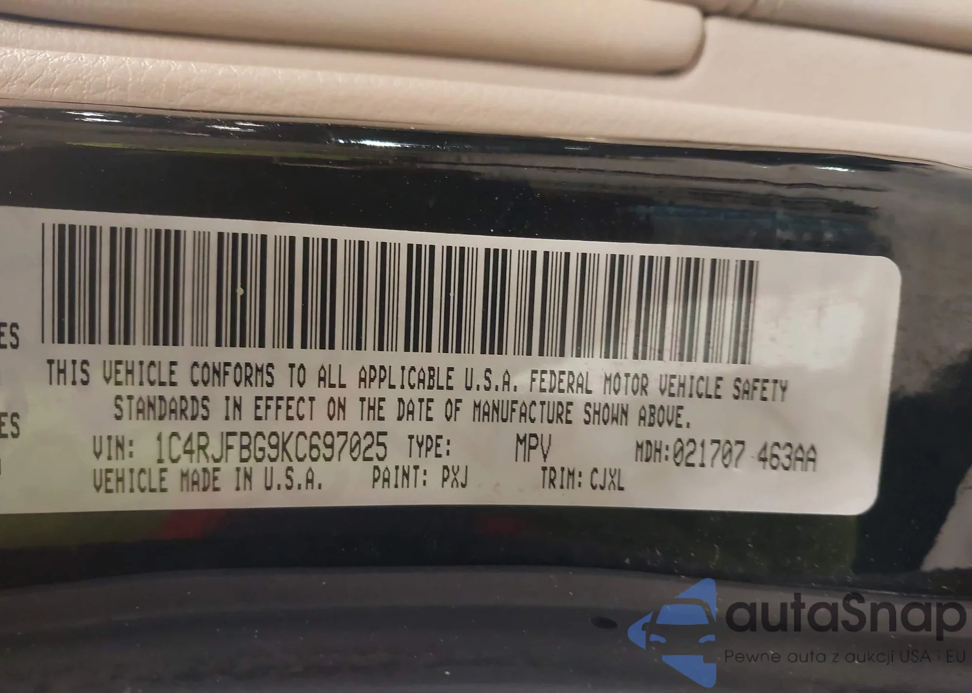 • VIN 1C4RJFBG9KC697025