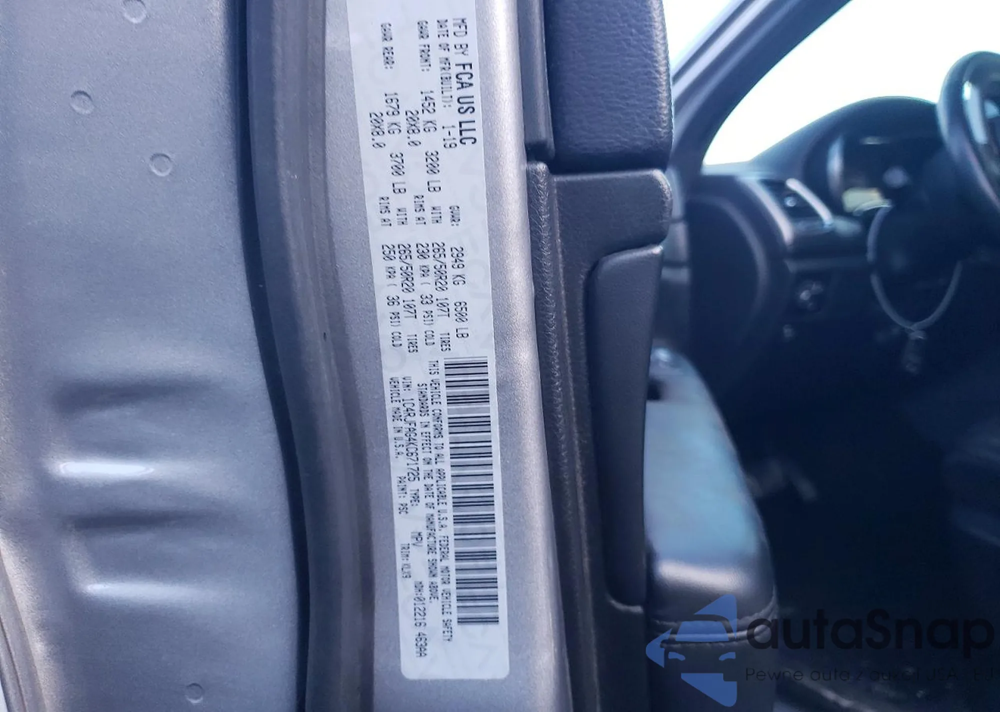 • VIN 1C4RJFAG4KC671725
