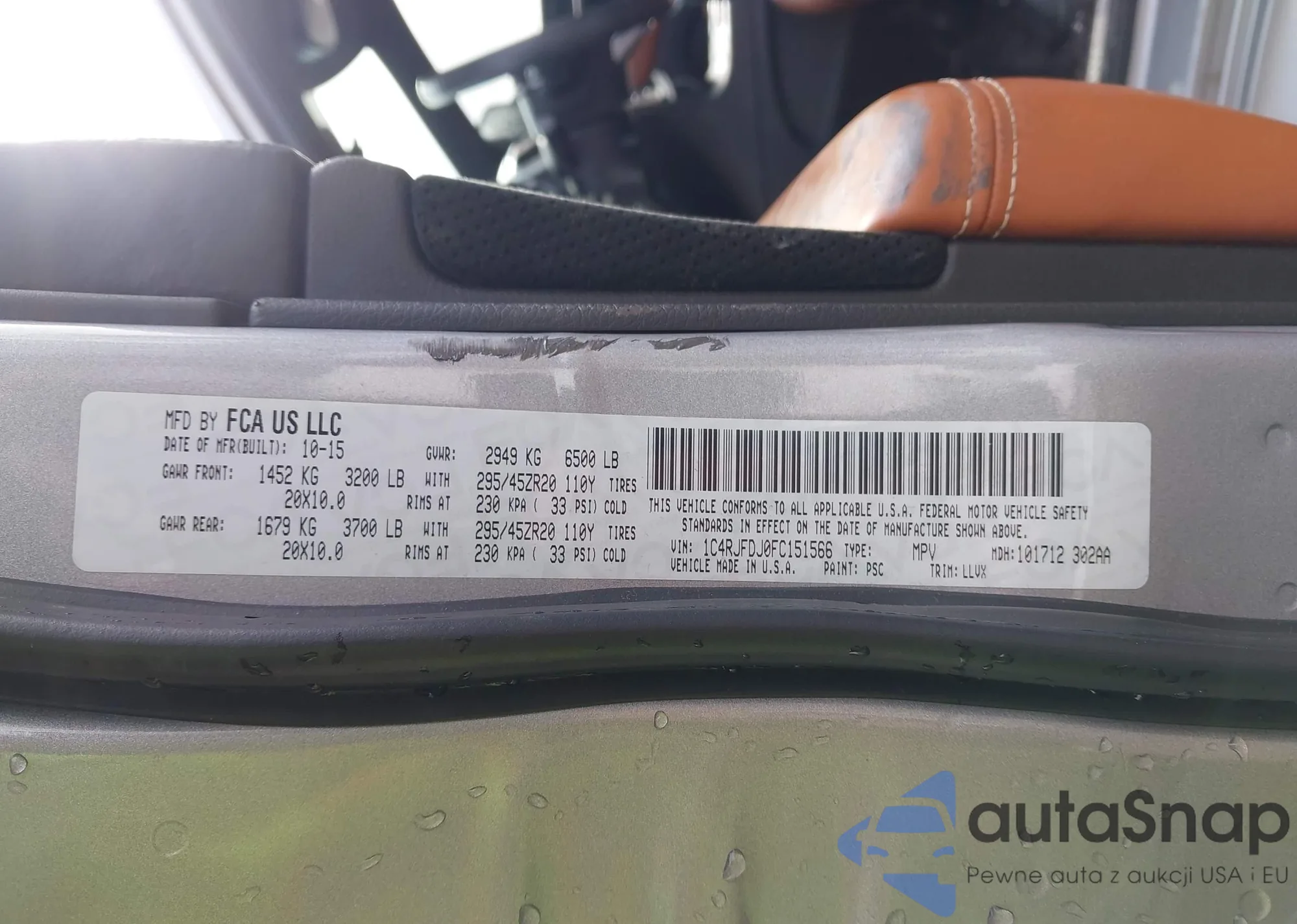 • VIN 1C4RJFDJ0FC151566