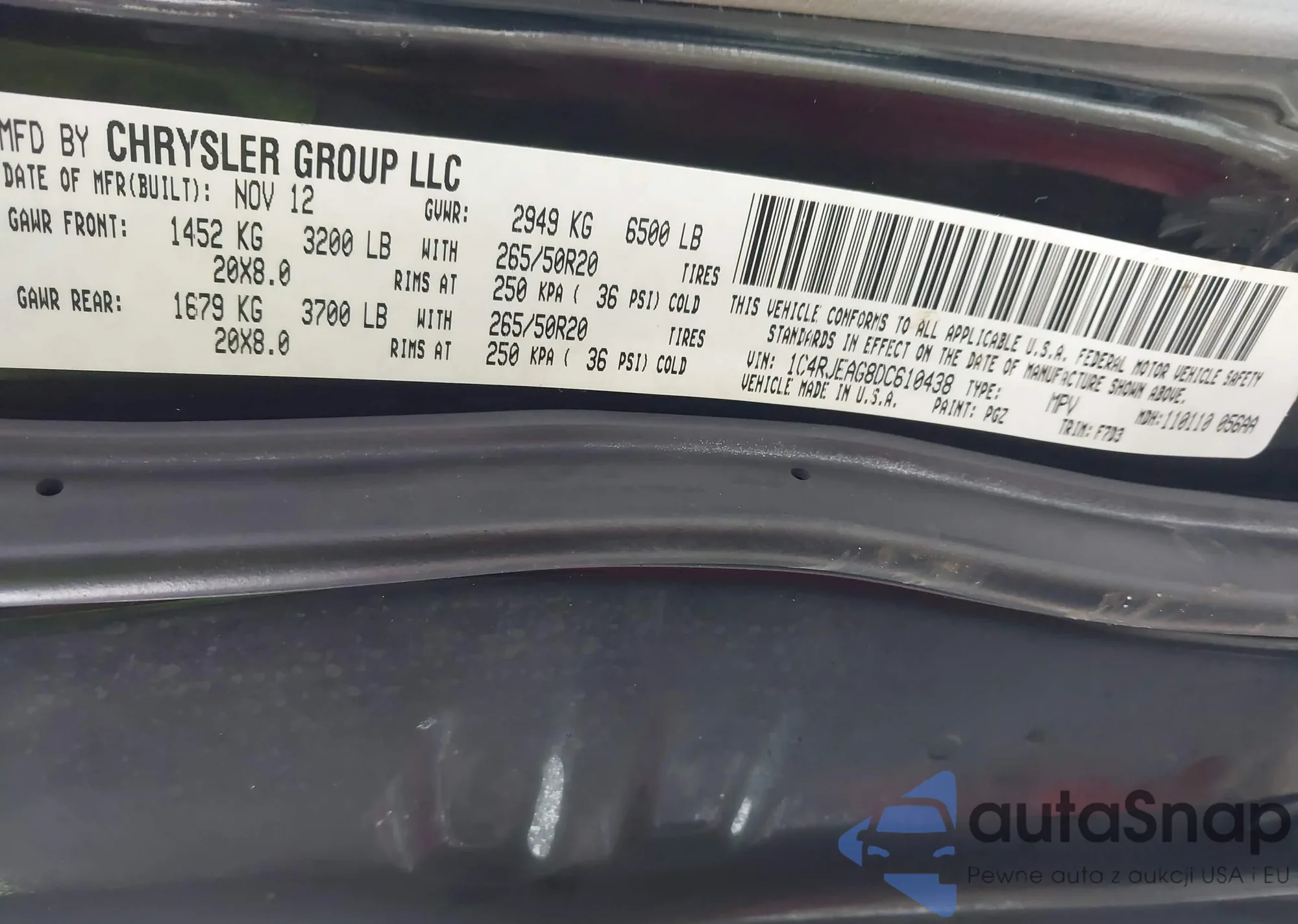 • VIN 1C4RJEAG8DC610438