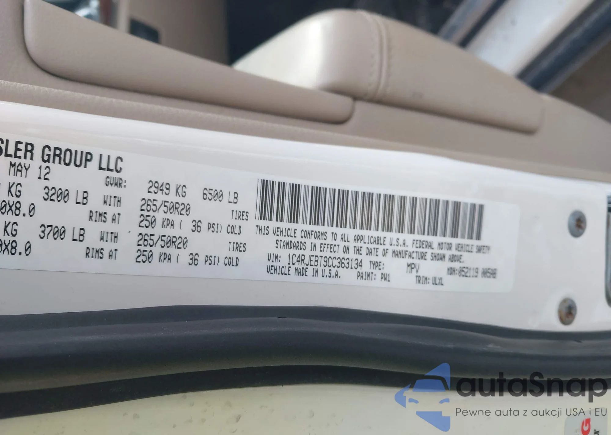 • VIN 1C4RJEBT9CC363134