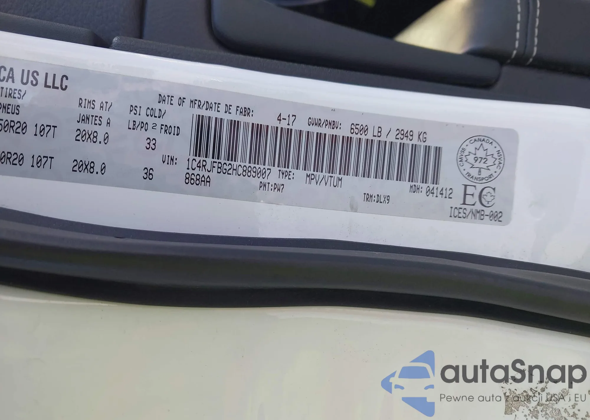 • VIN 1C4RJFBG2HC889007