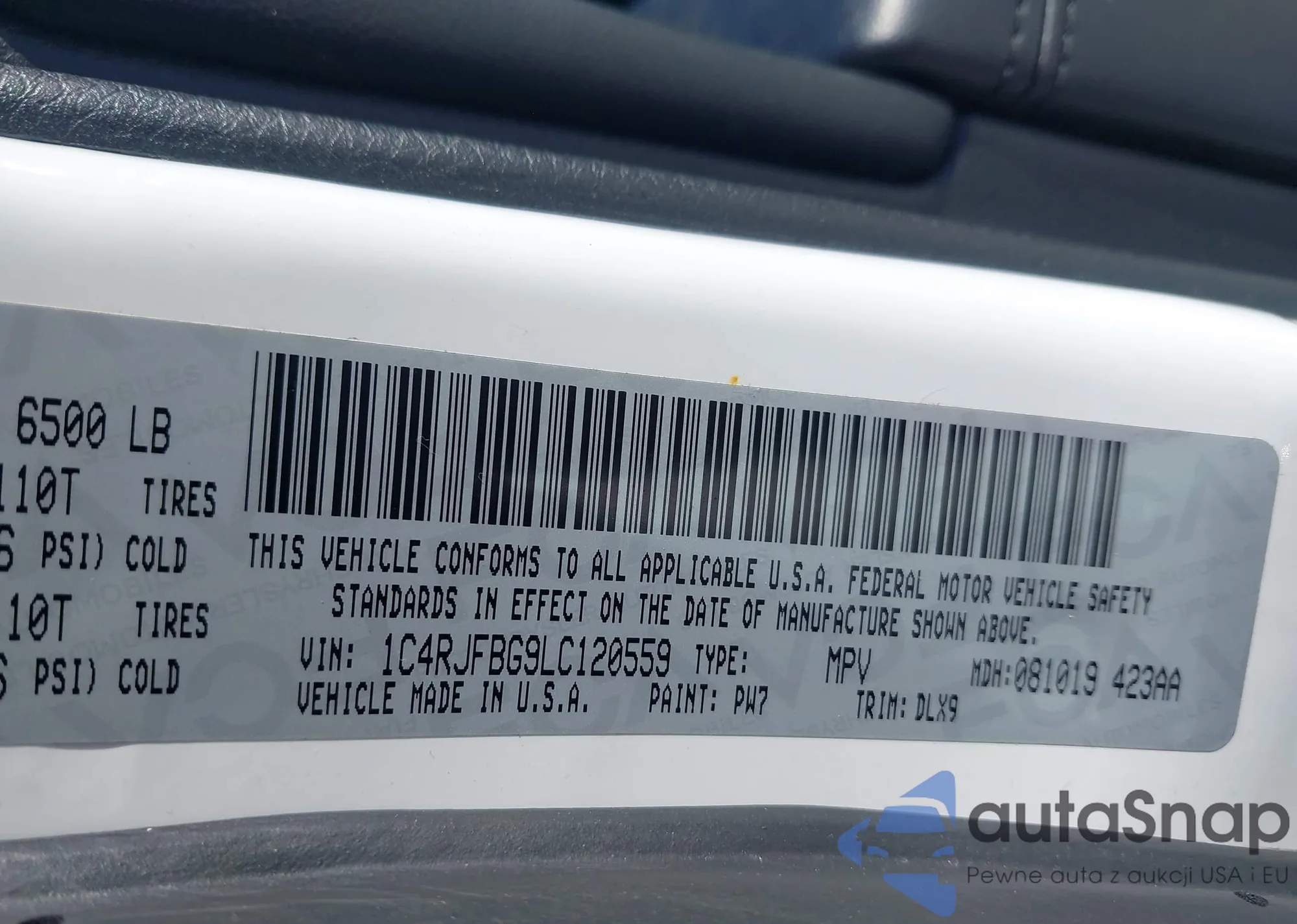 • VIN 1C4RJFBG9LC120559