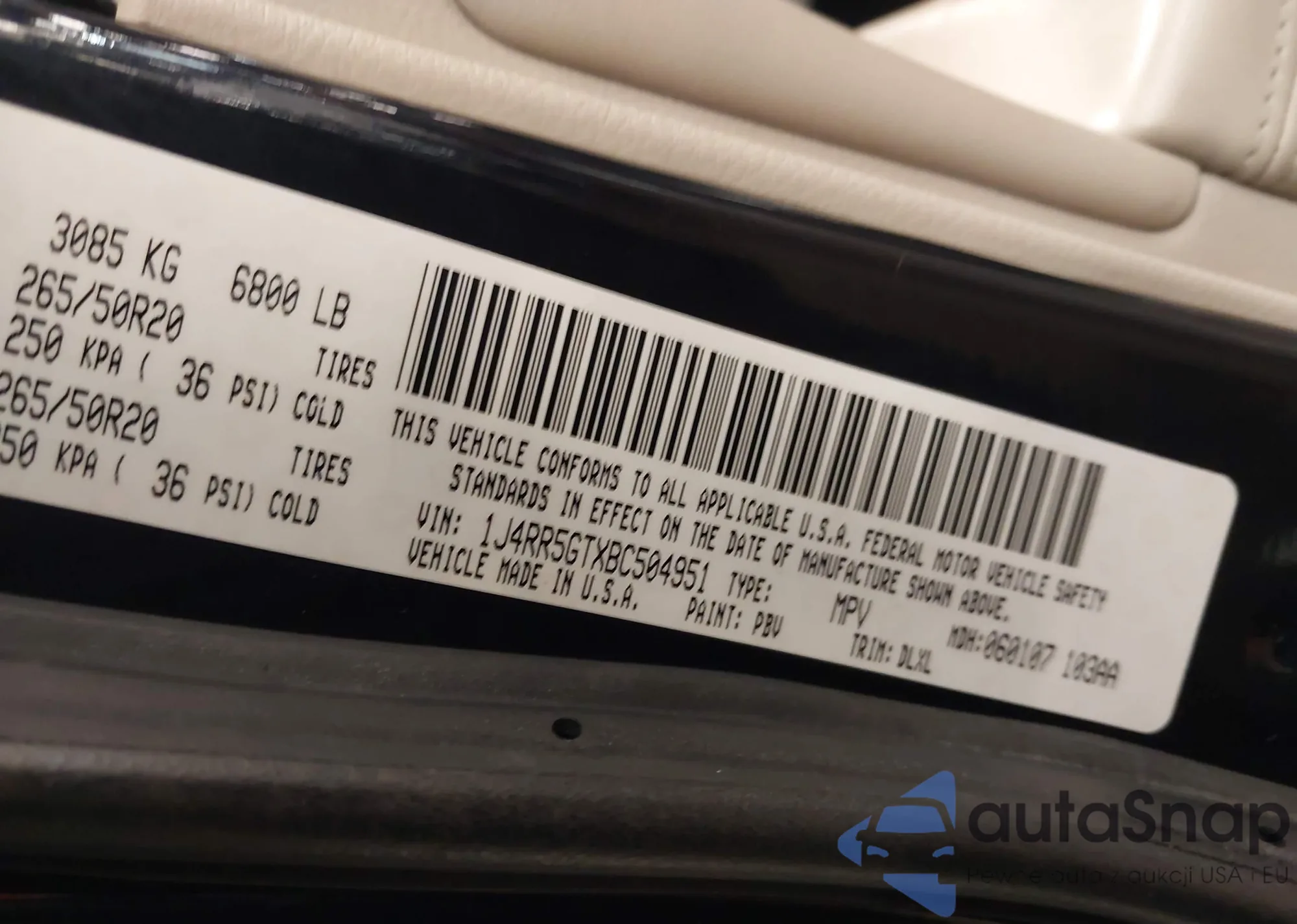 • VIN 1J4RR5GTXBC504951