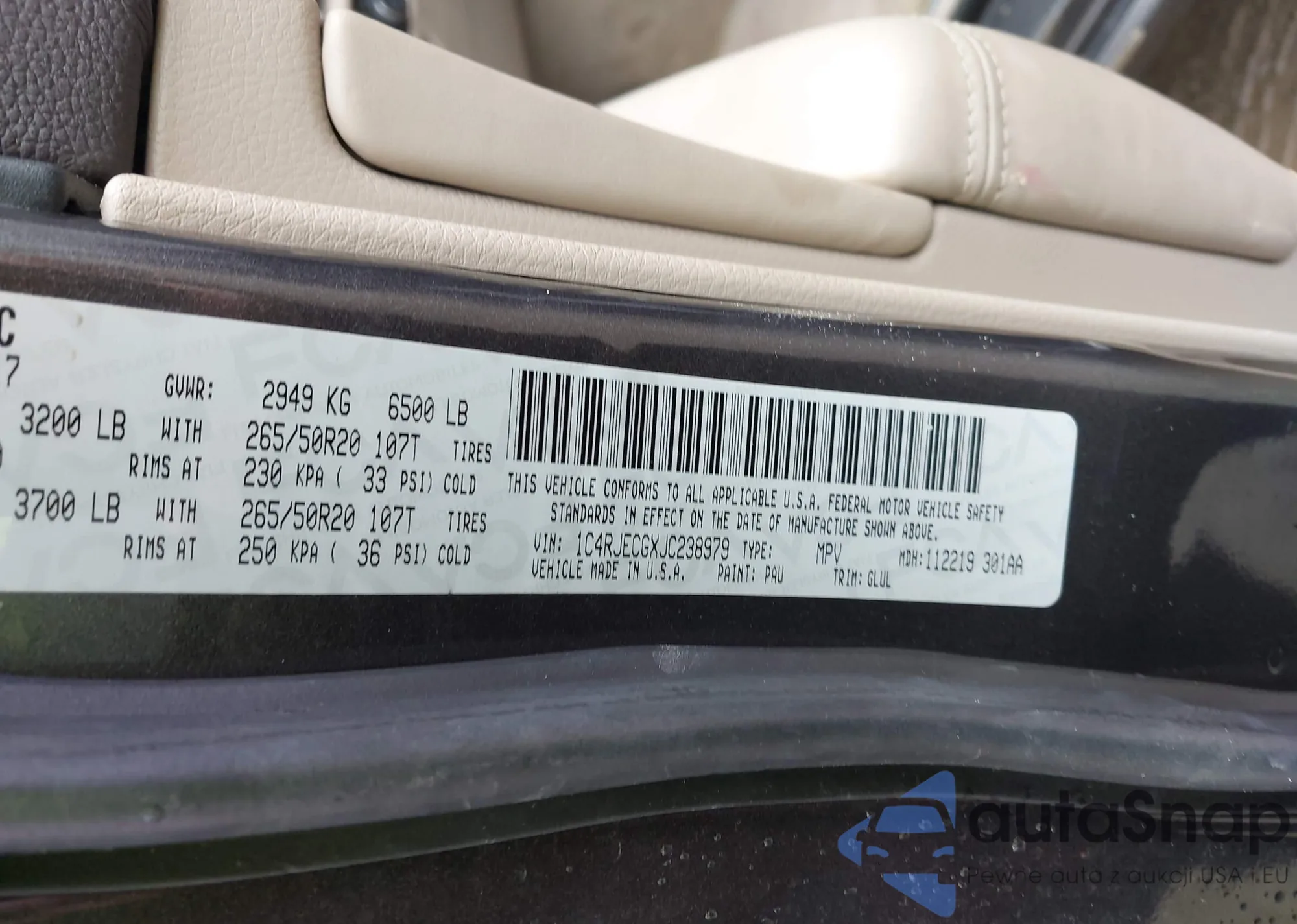 LOT: 43825257 VIN: 1C4RJECGXJC238979