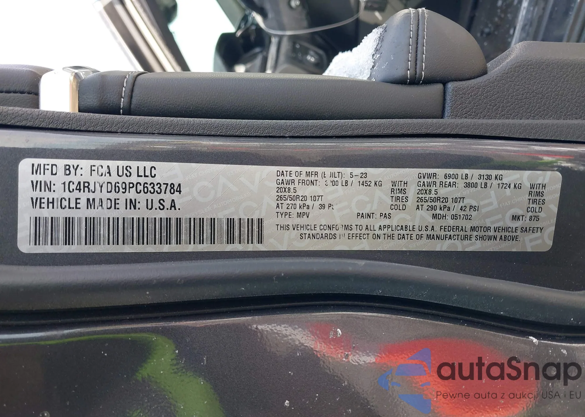 • VIN 1C4RJYD69PC633784