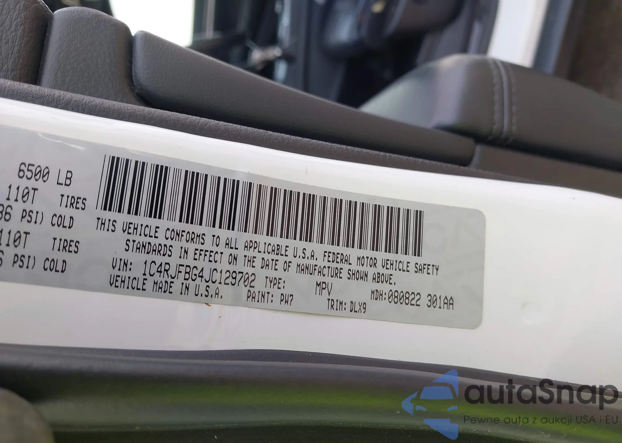 • VIN 1C4RJFAG8JC310657