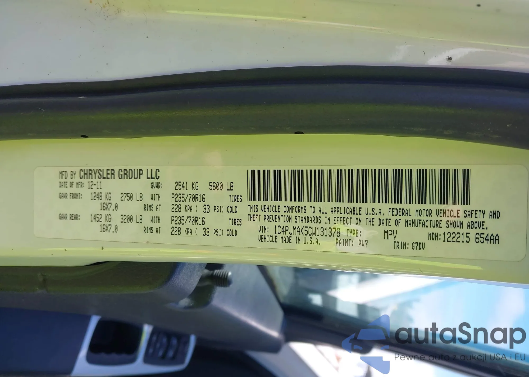 • VIN 1C4PJMAK5CW131378