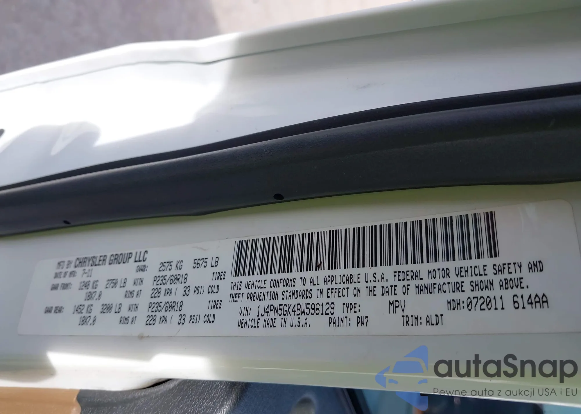 LOT: 44470032 VIN: 1J4PN5GK4BW596129