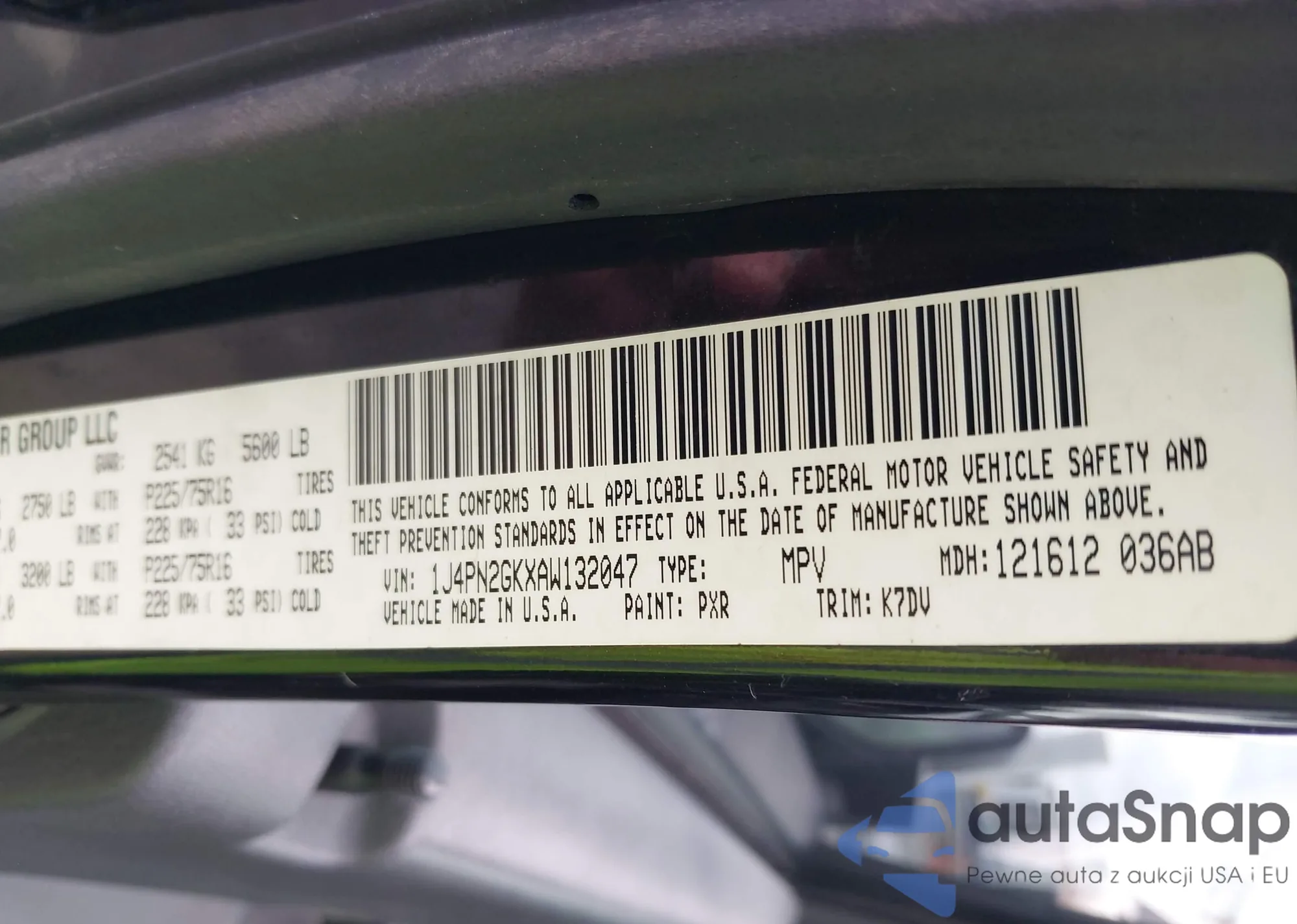 • VIN 1J4PN2GKXAW132047