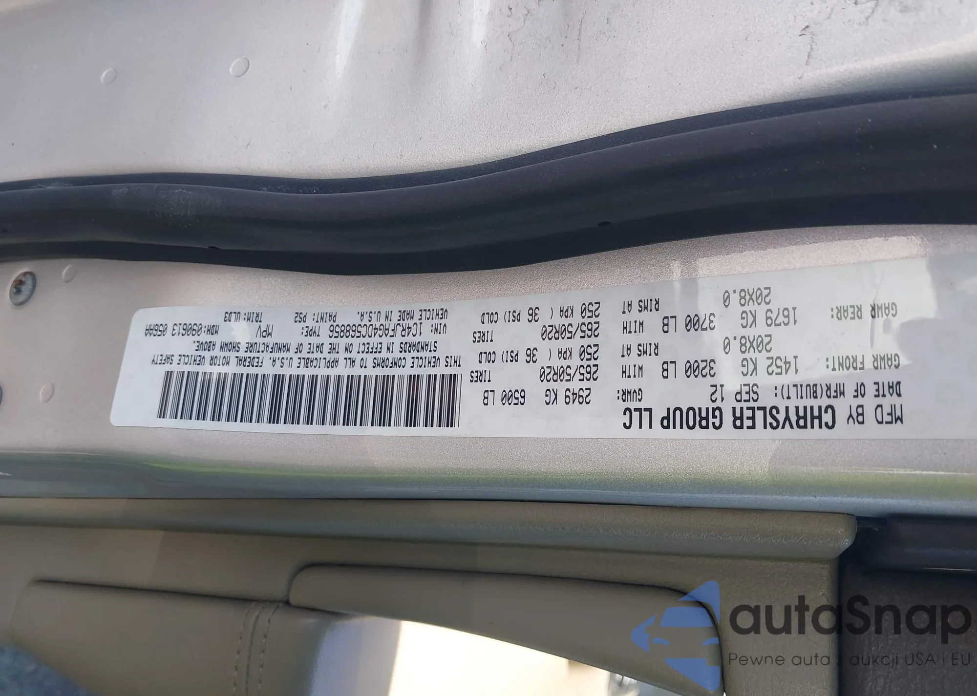 • VIN 1C4RJFAG4DC568856