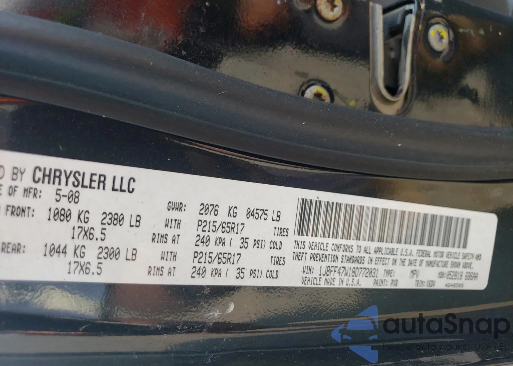 • VIN 1J8FF47W18D772031