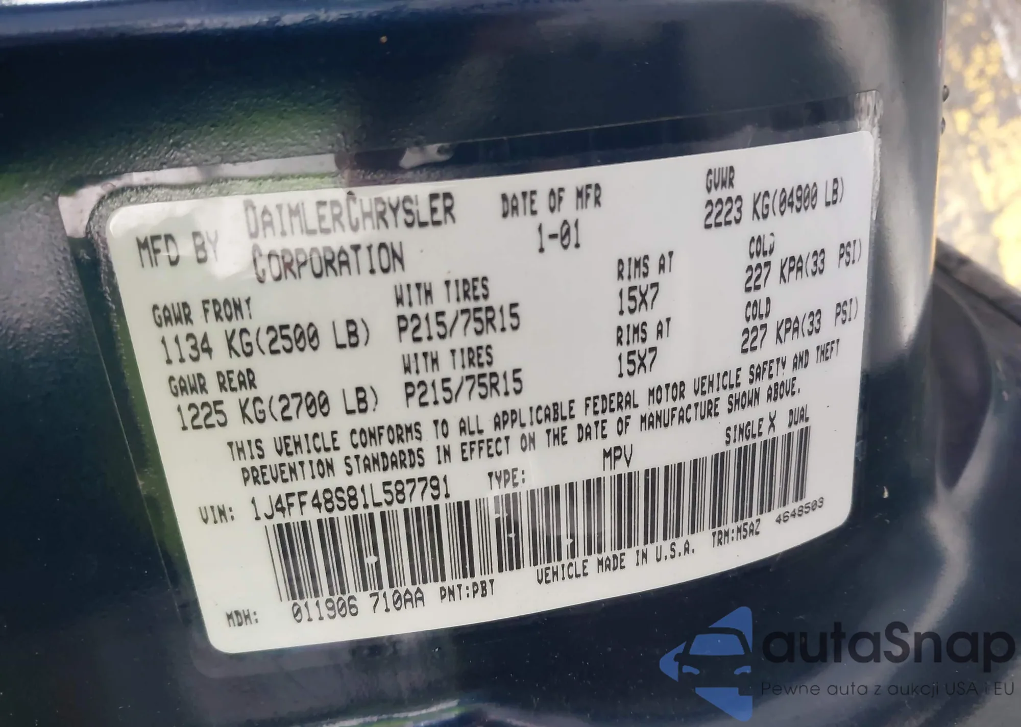 • VIN 1J4FF48S81L587791