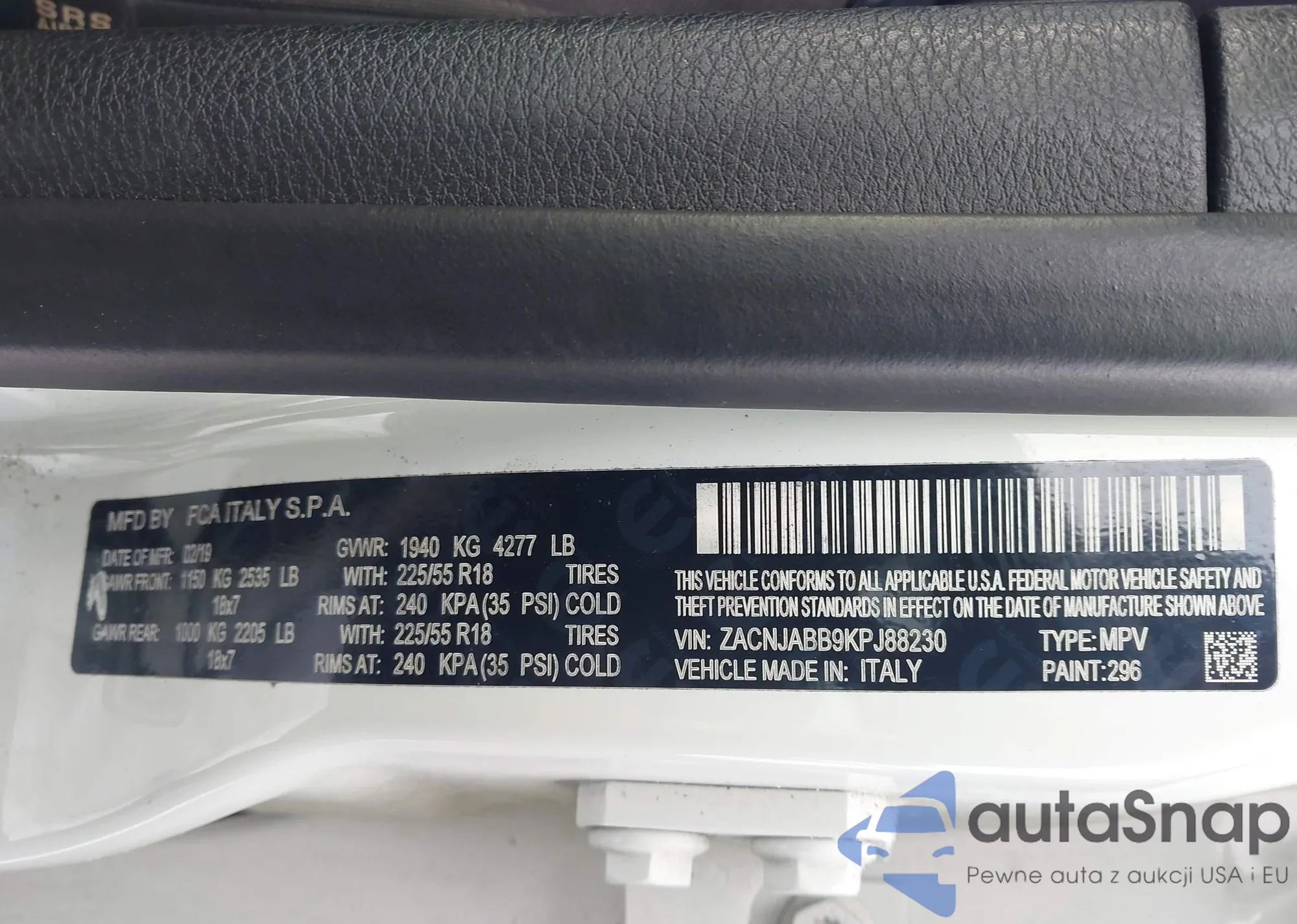 • VIN ZACNJABB9KPJ88230