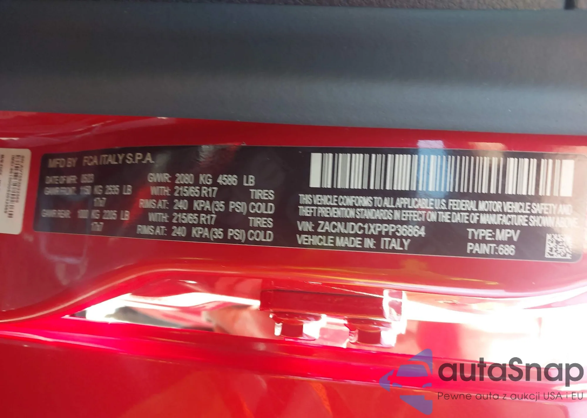 LOT: 44254657 VIN: ZACNJDC1XPPP36864