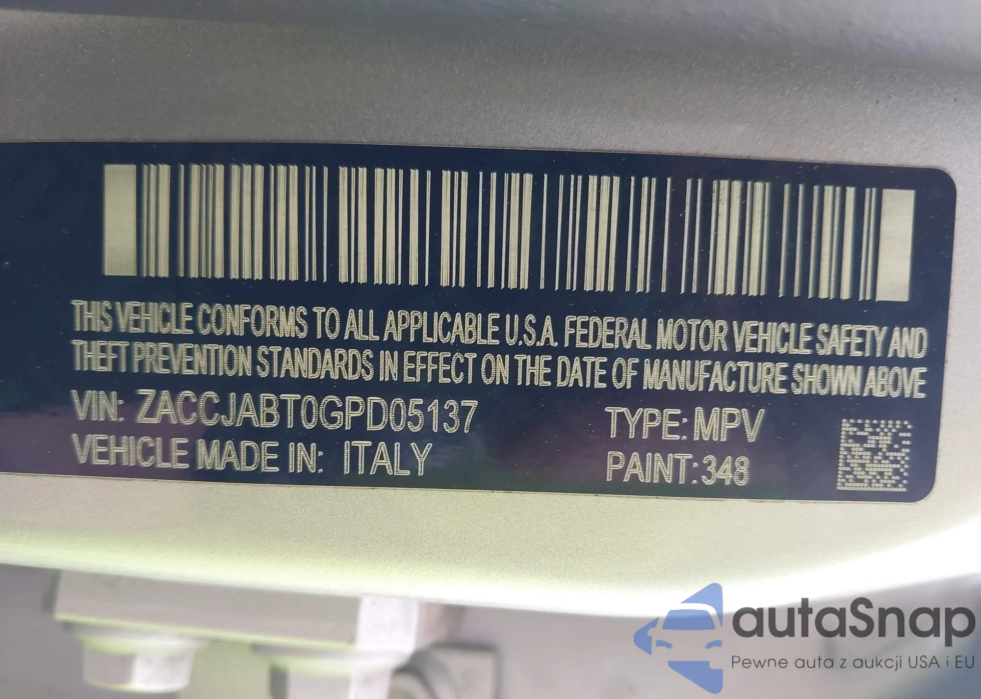 LOT: 44426134 VIN: ZACCJABTOGPD05137