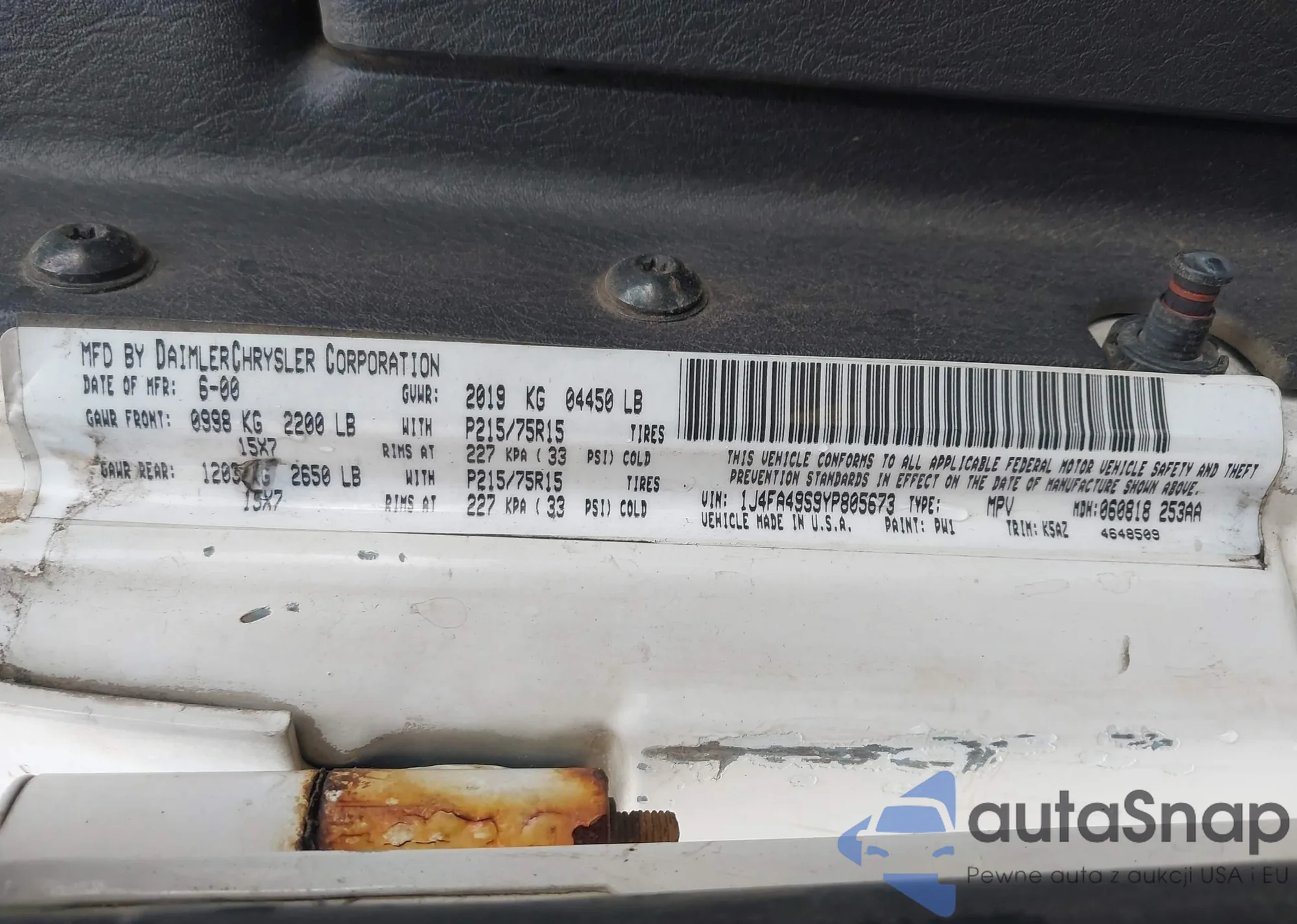 • VIN 1J4FA49S9YP805673