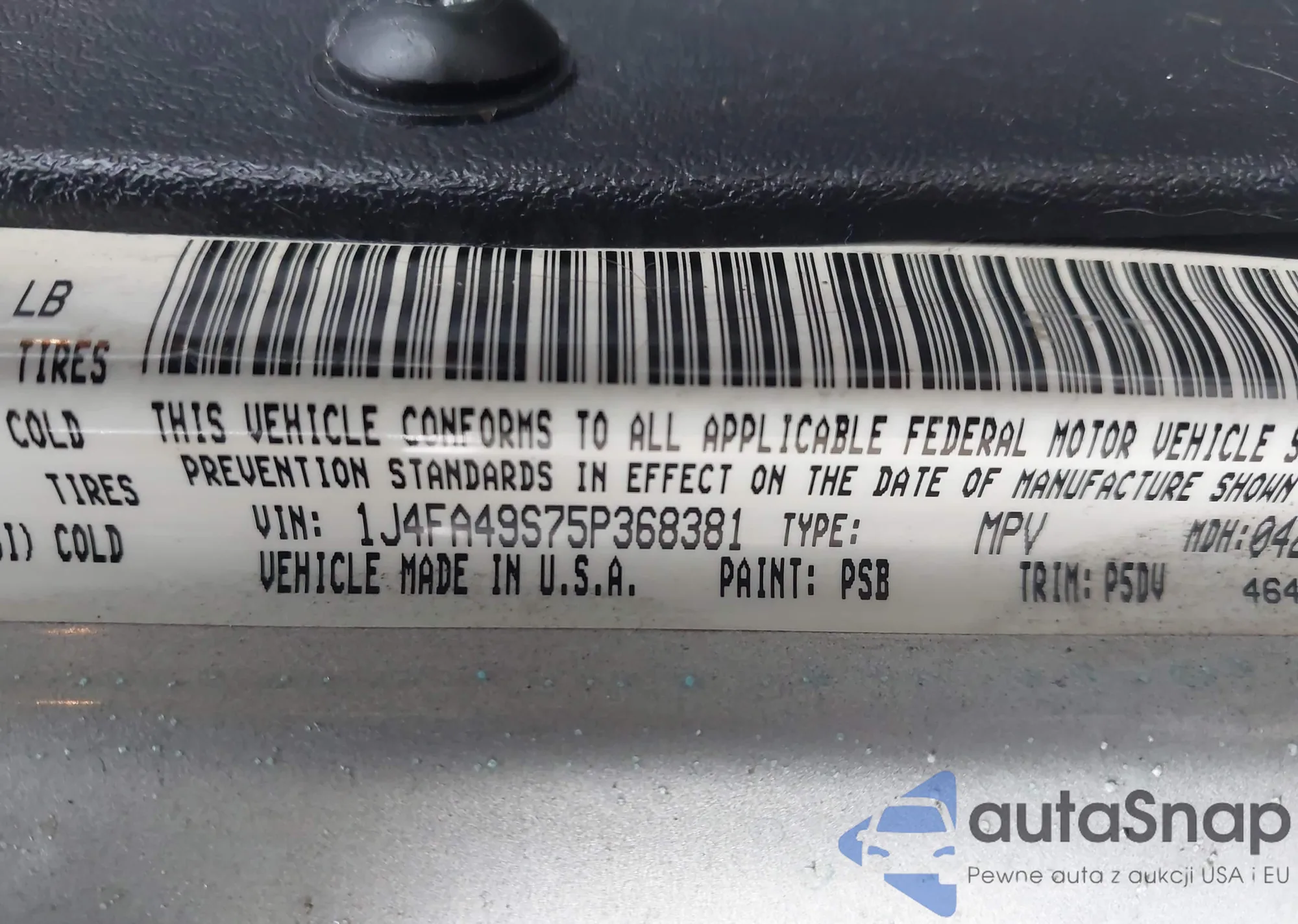 • VIN 1J4FA49S75P368381
