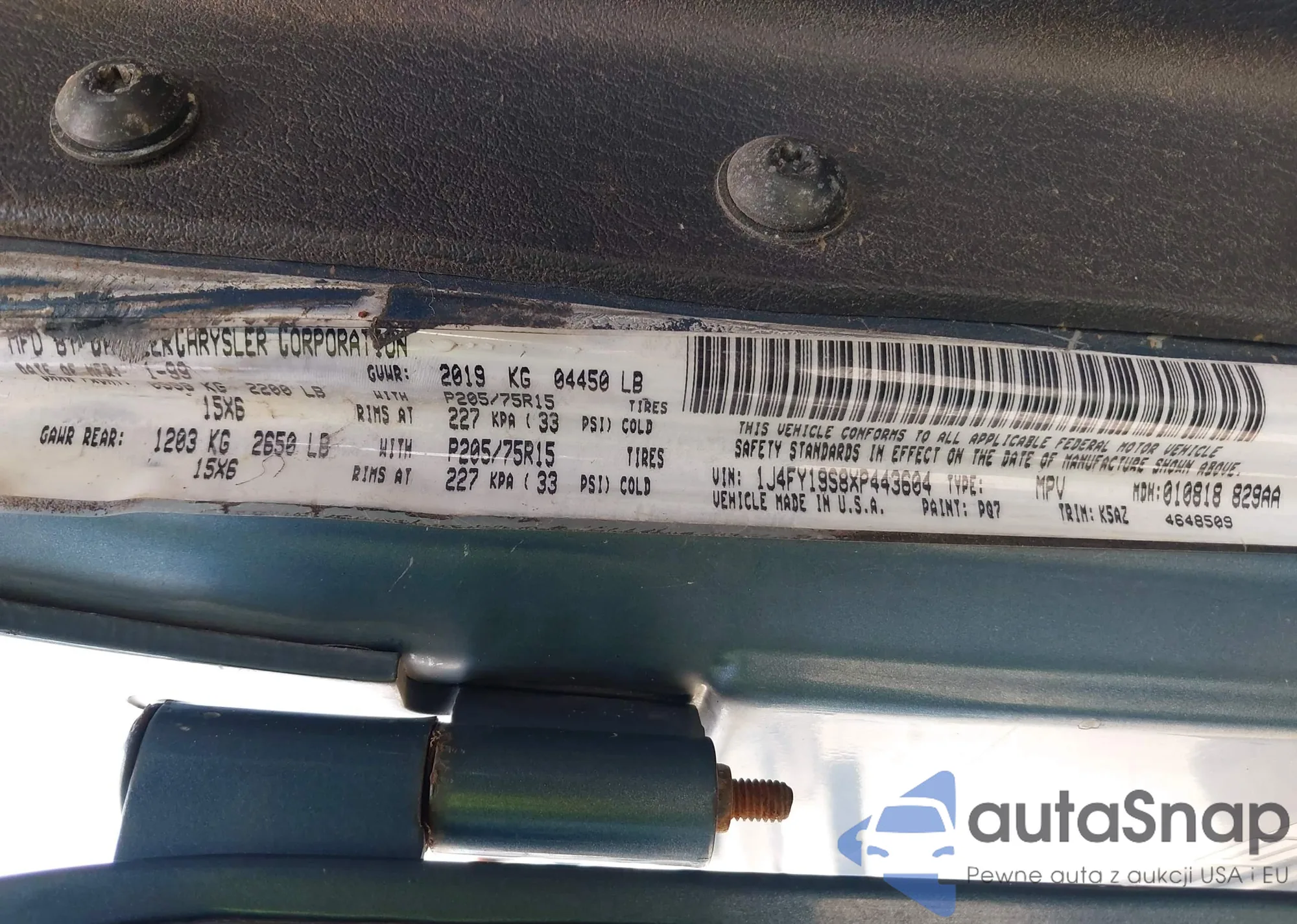 LOT: 44424944 VIN: 1J4FY19S8XP443604