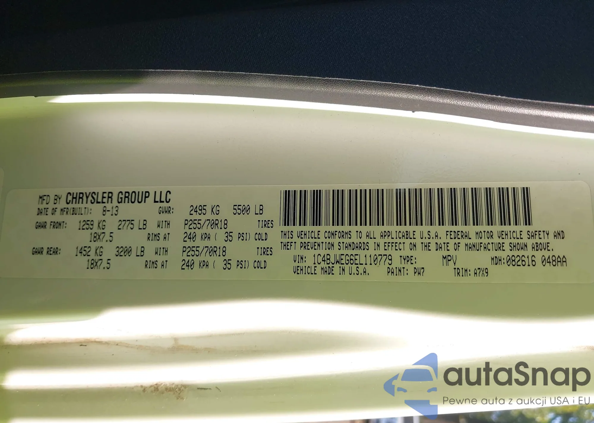 • VIN 1C4BJWEG6EL110779