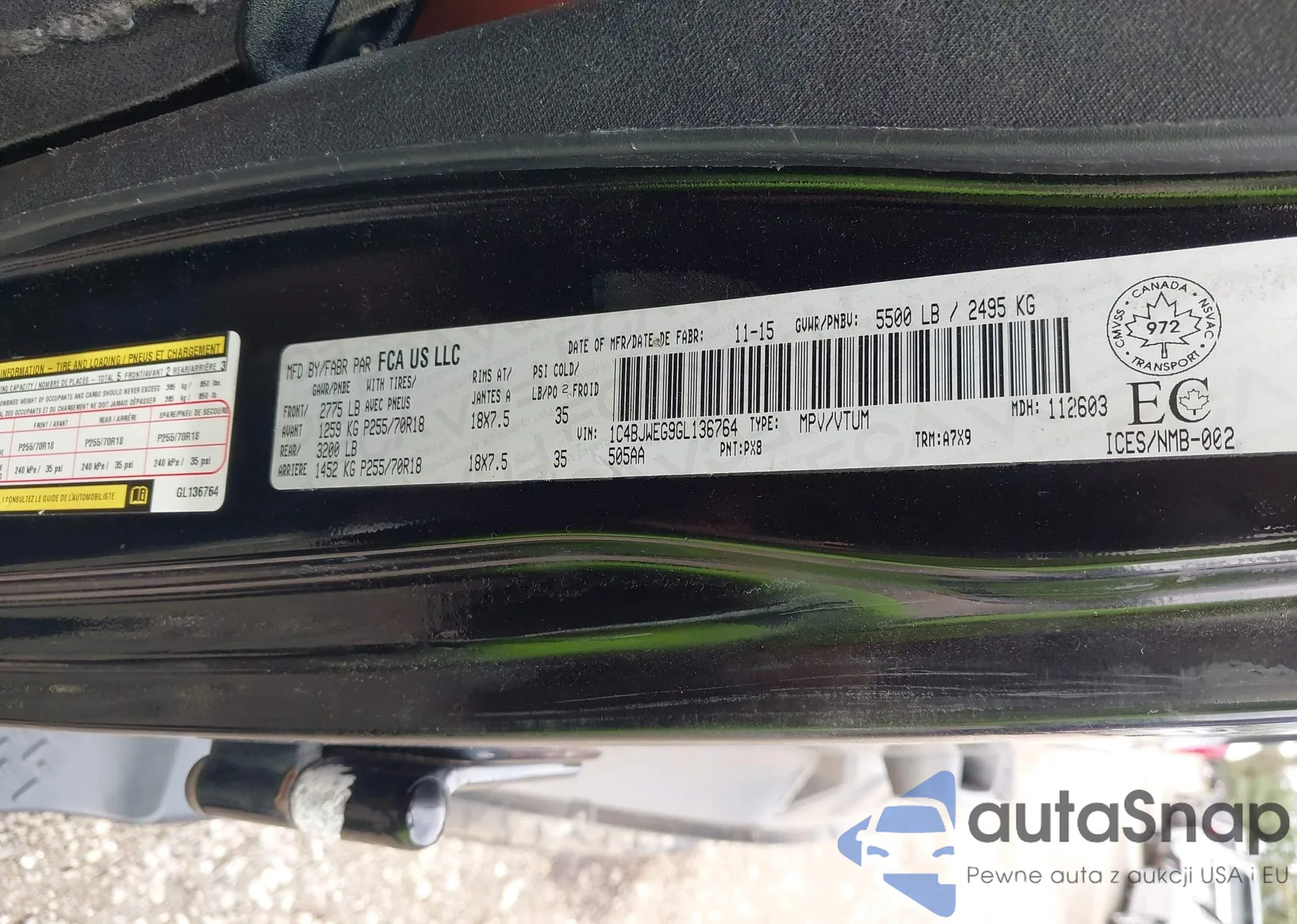 LOT: 43326729 VIN: 1C4BJWEG9GL136764