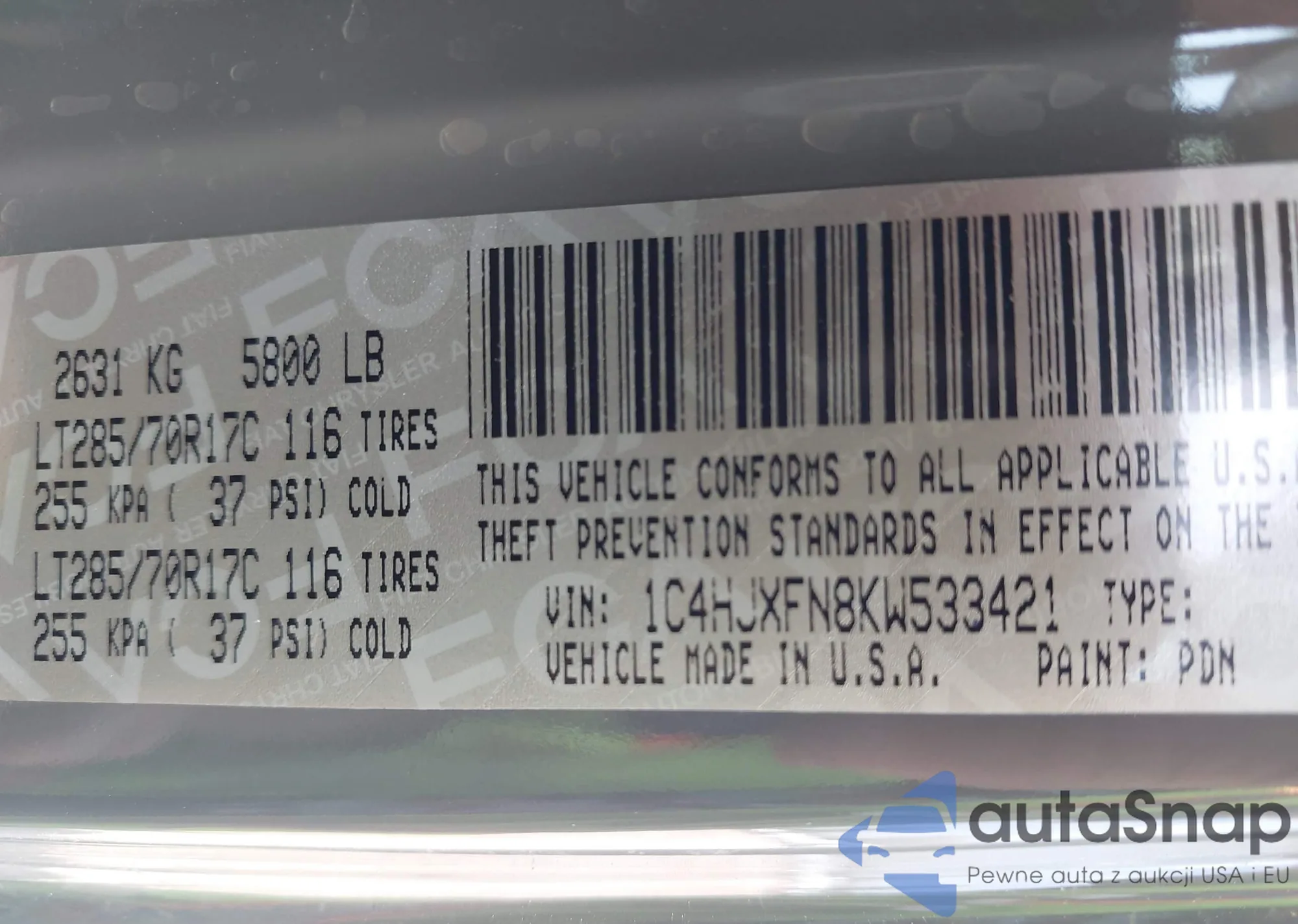 • VIN 1C4HJXFN8KW533421